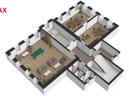 Unikátní multifunkční objekt v Lišnici – ideální pro firmu, instituci, poskytovatele soc. služeb i rodinné bydlení. Hledáte reprezentativní sídlo pro vaši firmu s dostatkem prostoru pro kanceláře i meetingy? Jste instituce, která rozšiřuje své aktivity a potřebuje vhodné a důstojné zázemí? Nebo sníte o prostorném rodinném domě s atmosférou venkova a přitom v dosahu města? Pak právě tento výjimečný objekt může být tou správnou volbou. Třípodlažní budova, původně obecní škola post.1886–1887, se nachází v klidné obci Lišnice u Mostu. Objekt má dva samostatné vstupy – hlavní, reprezentativní přístup vede po schodišti s klenutým kamenným portálem, zatímco zadní vchod propojuje dům se zahradou. Interiéru dominují původní prvky – zdobná klenutí, kamenné sloupy a historická atmosféra, která se snoubí s moderním technickým zázemím. Dispozice: V prvním nadzemním podlaží najdete kanceláře, technickou místnost, dílnu a příjemné relaxační zázemí se saunou a ochlazovacím bazénkem. Samozřejmostí je sociální zázemí. Druhé nadzemní podlaží nabízí velkou společenskou místnost – ideální jako školící sál, openspace nebo zasedací místnost. Dále zde najdete dvě prostorné kanceláře, kuchyňku, archiv a sociální zázemí. Dispozice je velmi flexibilní a dům nabízí široké možnosti úprav podle potřeb nového majitele. Přehlednou představu si můžete udělat z přiložených 2D/3D půdorysů. Technický stav: Budova byla průběžně modernizována při zachování historického rázu. Je napojena na veřejný vodovod i elektrickou síť. Odpadní vody jsou řešeny přes septik s usazovacími nádržemi s přepadem do vsakovací jímky. Bezpečnost objektu zajišťuje kamerový systém, který je propojen s mobilní aplikací, takže máte kdykoliv přehled o dění v okolí objektu. Vytápění zajišťují dvě tepelná čerpadla Mitsubishi (celkový výkon 28 kW) zapojená do kaskády, doplněná o záložní elektrický zdroj (6 kW) v akumulační nádrži. Pro zajištění komfortu v létě i zimě jsou v některých místnostech instalovány dvě multisplitové klimatizační jednotky Mitsubishi s možností chlazení i topení (výkon 12,8 kW). Exteriér: Udržovaná zahrada navazuje na dům a nabízí prostor pro Vaše aktivity. Je rozdělena na okrasnou a užitkovou část se vzrostlými ovocnými stromy. Výsadba podél oplocení zajišťuje soukromí. Před domem na klidné obecní komunikaci je dostatek místa pro pohodlné parkování. Dopravní dostupnost: Obec Lišnice se nachází jen cca 10 minut jízdy od centra Mostu a přibližně 9 minut od dálnice D7 (Praha – Chomutov-Chemnitz (DE)). Díky tomu jste na Letišti Václava Havla v Praze přibližně za 50 minut – což z nemovitosti činí výborně dostupné sídlo i pro společnosti se zahraničními partnery nebo častým cestováním. Tento dům je výjimečný nejen svou historií a architekturou, ale především svou variabilitou a možnostmi využití. Ať už hledáte sídlo firmy, komunitní prostor pro sociální služby, nebo netradiční rodinné bydlení s duší, jste na správném místě. Zavolejte nebo napište – rádi vám objekt osobně představíme.