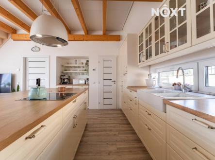 Hledáte domov, který propojuje moderní architekturu, soukromí a klidné bydlení v kontaktu s přírodou? Tento stylový dům o dispozici 4kk s loftem, zkolaudovaný v roce 2017, se nachází v obci Vyšehorky, místní části Líšnice, jen pár minut od Mohelnice. Lokalita je ideální pro ty, kdo touží po harmonii, pohodlí a ničím nerušeném prostoru. Dřevostavba s užitnou obytnou plochou 100 m² je citlivě zasazena do mírně svažitého pozemku o výměře 1260 m², což umožnilo vznik spodního podlaží (cca 45 m²) se zázemím, technickou místností a multifunkčním prostorem, aktuálně využívaným jako fitness. Pod hlavní terasou vznikl navíc krytý otevřený prostor (cca 27 m²) vhodný pro letní posezení, dílnu nebo ateliér. Rodinný dům má dispozici 4kk se šatnou, špajzem, koupelnou se sprchovým koutem, samostatnou toaletou a 3 ložnicemi. Dominantou domu je světlý a vzdušný obývací prostor s kuchyní a jídelnou, kde se strop otevírá až do krovu s přístupem na útulný loft – ideální pro práci, knihovnu, odpočinek, dětskou hernu či hostovskou zónu. Odtud se vychází přímo na velkou zastřešenou terasu s výhledem na nedalekou Mohelnici, odkud vedou schody do zahrady, která tvoří další "pokoj" tohoto domu. Zahrada je dominantou celé nemovitosti. Vznikla ve stylu vzrostlé ferdinandovské zahrady s heslem "Žijte ve své zahradě". Najdete zde zahradní domek, ohniště, vyvýšené záhony, zahradní sprchu, živé ploty, ovocné a okrasné dřeviny na zobačku i na pohled. Vše propojují štěrkové chodníčky, které vytvářejí jedinečný charakter a klidné útočiště pro vás i vaši rodinu. Technické informace: Energetická náročnost: B (nízkoenergetický dům) Topení: elektrické podlahové krbová kamna Obecní vodovod a ČOV Parkování pro více vozů, s možností přístřešku Lokalita Líšnice – Vyšehorky nabízí absolutní klid, sousedství jen několika rodinných domů, otevřenou krajinu a výhledy do polí. V blízkosti je jezdecký spolek Ryzáček, ideální pro milovníky koní a přírody. Veškerá občanská vybavenost – školy, školky, lékaři i obchody – je v nedaleké Mohelnici (5 minut jízdy autem) nebo Zábřehu (10 minut). Připravený pro ty, kdo hledají komfortní a stylové bydlení s duší, prostorem i soukromím. Zavolejte a domluvte prohlídku ještě dnes, protože tento dům musíte vidět na vlastní oči. Nejvýhodnější variantu financování vám v rámci našeho realitního servisu pomůžeme zajistit. Pro komunikaci uvádějte evidenční číslo zakázky N111695.