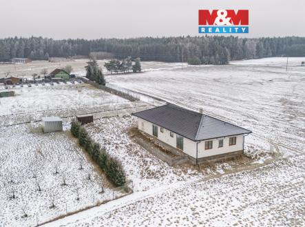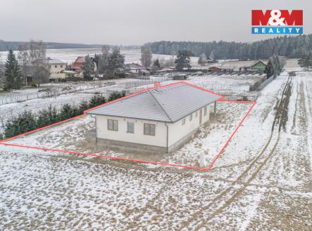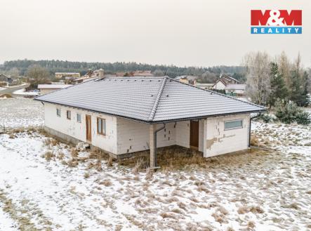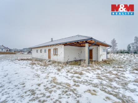 Nabízíme k prodeji rodinný dům ve výstavbě, situovaný v klidné části obce s dostatkem soukromí a krásnou okolní přírodou. Jednopodlažní dům je navržen pro pohodlné rodinné bydlení a nabízí užitnou plochu 120 m², celkem 6 místností a prostornou terasu o velikosti 43 m². Dům stojí na pozemku o rozloze 1001 m² a je v osobním vlastnictví, výstavba započala v roce 2018. Nemovitost je připravena na vlastní vrtanou studnu, domácí ČOV s akumulací vyčištěné vody a vsakem na pozemku. Elektřina je již přivedena, elektrický pilíř se nachází na hranici pozemku. Vytápění je navržené podlahovým topením v kombinaci s krbovými kamny, ohřev vody zajišťuje bojler. Parkování je možné přímo na pozemku, příjezd po zpevněné obecní komunikaci. Lokalita je ideální pro klidné bydlení i aktivní životní styl – cykloturistika, jízda na koni a pobyt v přírodě, autobusové spojení v dosahu. Pokud hledáte dům, kde si interiér vytvoříte podle sebe tak toto je ideální volba. Pro více informací kontaktujte makléře!