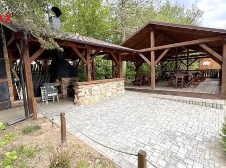 Nabízíme k prodeji luxusní rodinný dům s možností skloubit bydlení s podnikáním v obci Litohošť v okrese Pelhřimov. Dům prošel kompletní rekonstrukcí, kdy část byla celá nově postavena. Dům je nadstandardně vybaven a poskytne Vám dostatek soukromí i komfort po celý rok. Dům je možný celoročně pronajímat a to buď celý, nebo jen část stálé zavedé klientele, která se opakovaně vrací (rekreace, oslavy, svatby). Možnost ubytovat 20 osob + 3 osoby v zahradním domku. Dispozičně je dům tvořen v přízemí společenskou místností s krbem a posezením, společenská místnost s barem, kuchyně, jídelna, koupelna. V podkroví dva Apartmány o 7 pokojích a 3 koupelnami. Dále prostorná sauna s odpočívárnou a fitness místnost. Na uzavřeném dvoře zastřešená vířivka (2,5 x 1,5 m) s celoročním provozem. Na zahradě zastřešený a tepelným čerpadlem vyhřívaný bazén s protiproudem 7 x 7 m. Dále altán 12 x 6 m s krbem, udírnou a grilem, zahradní domek 1 x palanda a 1 x lůžko, domek pro děti, skluzavka, houpačka, pískoviště. Dále před domem parkoviště a samostatná garáž o zastavěné ploše 90 m². Garáž je patrová z příjezdové cesty lze do garáže zajet do přízemí a od domu do horního patra – případně využít, jako sklad. Vytápění je řešeno automatickým kotlem na pelety, případně plynovým kotlem z plynové nádrže umístěné na zahradě. Voda obecní případně připojení z vlastní studně, u domu jsou celkem 3. Kanalizace je řešena domácí čistírnou odpadních vod. Tato nemovitost nabízí skvělý potenciál pro investory, kteří hledají perspektivní investici s vysokou návratností v oblasti rekreace, případně pro firmy, které hledají vlastní rekreační objekt s vysokou kapacitou. Prostory tohoto domu poskytují možnost skloubit bydlení s podnikáním. V případě zájmu o prohlídku nás neváhejte kontaktovat.