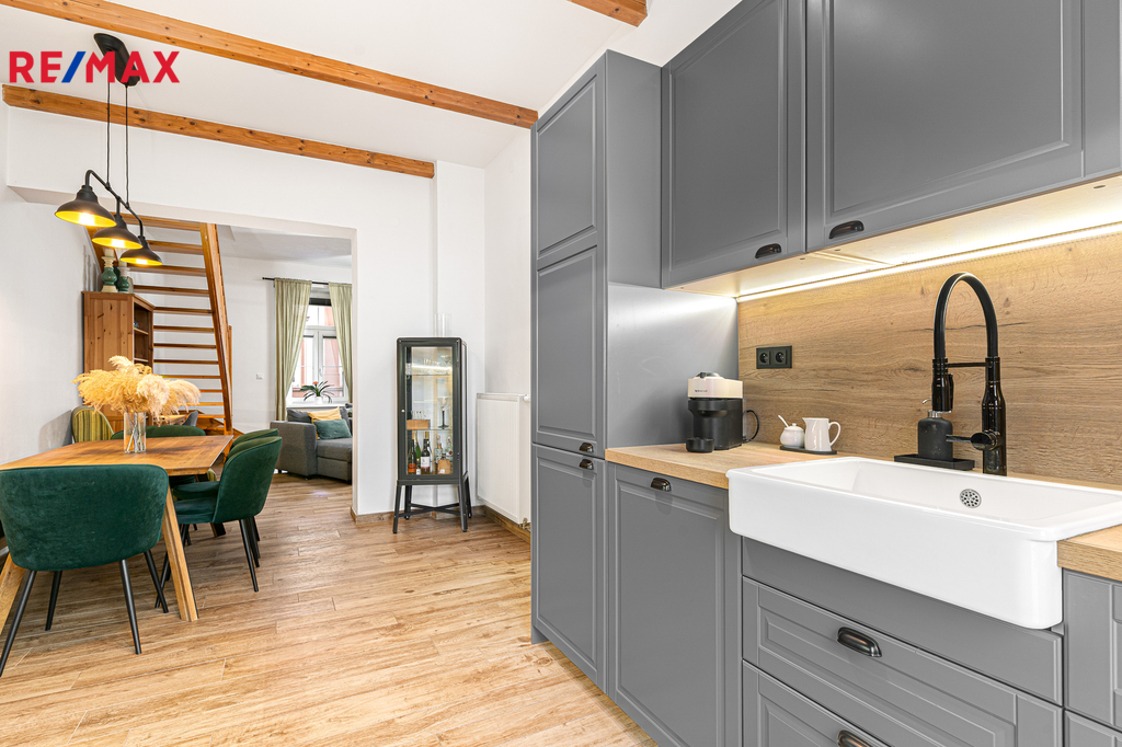 Hledáme byt v cihle, nevíte o něčem? Kdyby se něco objevilo, dejte nám vědět. Takto nějak nejčastěji zní poptávka po bydlení v historické cihlové zástavbě města Litoměřic. Je to zástavba činžovních domů z přelomu 19. a 20. století, která má pro místní nezaměnitelný charakter. A k tomu máte v těsném sousedství této části města to nejlepší z Litoměřic. Jenže věc má háček. Tato část města je co do počtu domů limitována. Žádné proluky pro dostavbu, žádné polorozbořené domy na rekonstrukci. A tudíž je velmi limitovaný počet bytů, které se v těchto domech nachází. A ještě více je nedostatek těch bytů, které by zde šlo koupit. Jedna taková nabídka je nyní před vámi. Nabídka, která na sebe strhla na sítích ohromnou pozornost. Turgeněvova ulice. Dům, ve kterém se tento byt nachází pochází z roku 1877. Menší měšťanský dům o čtyřech bytech, celkově podsklepený, se dvorem a zahradou v zadním uzavřeném traktu domu. Prostě klidné a velmi residenční bydlení. Poslední velké úpravy v domě proběhly celkem nedávno. A to vybudování dvou mezonetových bytů, kdy bylo využito do té doby prázdné půdy. Tento mezonetový byt vznikl v roce 2008 a to propojením původního bytu 2+1 s částí půdy přímo nad tímto bytem. Vznikl tak jedinečný mezonetový byt s pořádnou porcí obytného prostoru rozděleného do třech ložnic, dvou koupelen, chodeb, kuchyně a obývacího pokoje. Z kuchyně je vstup na velmi prostorný balkon s automaticky ovládanou markýzou proti letnímu slunci. Z balkonu máte výhled do uzavřeného dvora. Svoje hrající si ratolesti na zahradě tak můžete okem kontrolovat při přípravě oběda. Jenže to není vše. K bytu náleží dva košatě prostorné sklepy – 10,5 a 13,2 m2, které jsou osazeny přípojkou elektřiny. Využití těchto sklepních částí je už na vás. Rozhodně oba tyto sklepy stojí za pozornost. A stále to není vše. Na dvůr domu v zadním traktu navazuje naprosto rovinatý kus pozemku. Asi čtvrtina z něj je převáděna v podobě podílu společně s bytem. Na této části stojí zděná pergola, taktéž osazena přípojkou elektřiny. Ideální místo na váš letní drink a gril. A ještě ideálnější pro váš letní homeoffice. Sečteno, podtrženo máte zde nabídku 116 m2 bytu s košatým příslušenstvím a ještě navíc podíl na domě a pozemku v jedné z nejlukrativnějších částí města. Pár technických údajů. Výstavba mezonetu na základě povolení z r. 2008. V roce 2020 jeho nový majitel provedl zásadní úpravy, které daly bytu dnešní podobu – nové koupelny, nové rozvody topení a vody, nová linka, propojení kuchyně s obývacím pokoje, podlahové krytiny, klimatizační jednotka a mnoho dalšího. Topení a teplou vodu zajišťuje kombinovaný plynový kotel. Zadní trakt domu je zateplen vč. nové fasády. Vše si můžete prohlédnout a to osobně po přihlášení k prvnímu kolu prohlídek pátek 20.02. V případě vícero zájemců bude nabídka podstoupena nejlepší protinabídce.