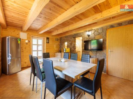 Chcete bydlet v domě se stylem, duší a investičním potenciálem? Nabízím krásný rodinný dům v Údolí u Lokte, aktuálně provozovaný jako úspěšný apartmánový dům. Najdete zde tři samostatné apartmány (celkem až pro 13 osob), velkou společenskou místnost s kuchyňkou, moderní koupelny a útulný interiér z přírodních materiálů. Venkovní kovové schodiště vede na terasu s výhledem do zeleně, zahrada je oázou klidu s posezením, grilem i ohništěm. Parkování až pro 4 auta. Dům je ideální pro investory, rodiny i podnikání v pohostinství. Stálá klientela a skvělá obsazenost, krásná příroda a kulturní akce v Lokti – přijďte se přesvědčit osobně! Pro více informací mě kontaktujte.