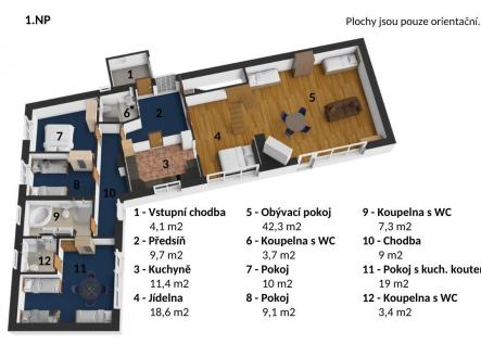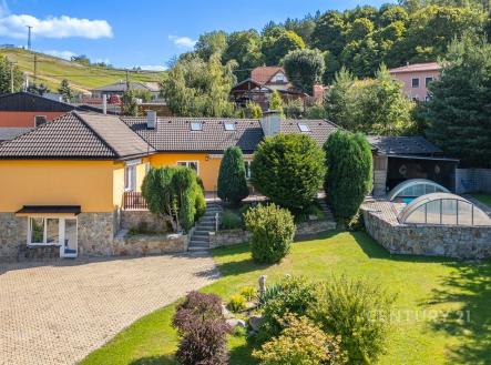Hledáte prostorný dům, kde bude mít každý člen domácnosti dostatek soukromí? Chcete se celé léto cítit jako na dovolené? Pak právě pro vás máme velký rodinný dům v historickém městě Loket o celkové užitné ploše 271 m². Pozemek o velikosti 1 741 m² nabízí dostatek prostoru pro relaxaci i zábavu – a vaše děti si zamilují vyhřívaný bazén. Začněme hlavním patrem o rozloze 148 m². Dominantou je prostorný obývací pokoj propojený s jídelnou o celkové ploše 61 m². Navazuje na něj velká kuchyně, která poskytne dostatek místa pro přípravu lahodných pokrmů. Z kuchyně se dostanete do předsíně, kde najdete první ze dvou koupelen na tomto patře. V předsíni se nachází také vstup do sklepa a hlavní vchod do domu. Z chodby pak vedou dveře do dvou samostatných pokojů a další koupelny. Třetí pokoj v tomto patře má vlastní koupelnu a přímý vstup z terasy, původní dveře z chodby je však možné jednoduše obnovit. Na terasou se dostanete jak z obývacího pokoje, tak i z chodby u druhé koupelny. Ve spodním patře vznikla přestavbou původní garáže samostatná bytová jednotka (27 m²) s kuchyňským koutem a koupelnou. Z ní vede spojovací chodba do sklepa o ploše 66 m², který nabízí obrovský potenciál – může z něj být sauna, posilovna či cokoliv jiného podle vašich představ. Z obývacího pokoje vede dřevěné schodiště do podkroví (31 m²). Stropy jsou zde sice nižší, ale prostor nabízí tři další místnosti – ideální pro sezónní skladování nebo jako dětské pokojíčky. Na terase si užijete soukromí díky vzrostlým tújím ve svažité skalce. Stačí pár kroků a jste u krásného vyhřívaného bazénu, který osvěží v horkých dnech a vaše děti si ho zamilují. Vedle bazénu stojí prostorná pergola s velkou televizí, ideální místo pro rodinné obědy a večeře. Současná úprava domu vychází z jeho využití v posledních letech – fungoval totiž jako ubytovací zařízení s 13 lůžky (a vešlo by se jich i víc!). Dům je zateplený a většina oken je plastových. Nabízí se také možnost využít evropské dotace na další zateplení, fotovoltaiku či tepelné čerpadlo. Loket je historické město, které láká turisty z celého světa. Dominantou je hrad Loket s proslulým amfiteátrem plným kultury. Sportovní nadšence přiláká motokrosová trať, kde se konají závody světového poháru. Městem prochází cyklostezka Karlovy Vary–Cheb a okolní příroda vybízí k procházkám či houbaření. Abychom vám cestu k vlastnímu bydlení co nejvíce usnadnili, nabízíme i možnost vypracování nezávislého porovnání financování a přípravu řešení šitého na míru vašim potřebám a možnostem. V případě většího zájmu proběhne jednání o ceně. Více informací a prohlídku Vám zajistí realitní makléř Viktor Tůša.