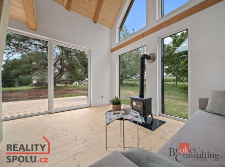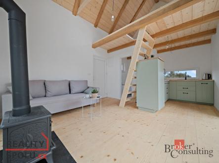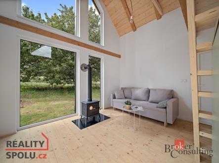 Stylová chata s krbem a terasou – k vidění ihned Představujeme vám vzorovou chatu, která je již postavená a připravená k prohlídce. V přízemí se nachází koupelna, kuchyňský kout a útulný obývací prostor s krbem. Otevřený loftový prostor pokračuje do patra, kde je umístěné spaní. Atmosféru doplňuje venkovní terasa ideální pro posezení a odpočinek. Chata je připojena na vodovod a elektřinu, má vlastní jímku, je zateplená a vhodná k celoročnímu užívání. Nejedná se o továrně vyráběný modul, ale o poctivě postavenou stavbu přímo na místě. V této lokalitě je k dispozici několik dalších pozemků, kde mohou vyrůst podobné chaty. Pokud vás osloví styl, dispozice a atmosféra této vzorové stavby, můžete si zde nechat postavit svou vlastní chatu. Máte zájem? Přijďte se podívat osobně a domluvte si prohlídku.