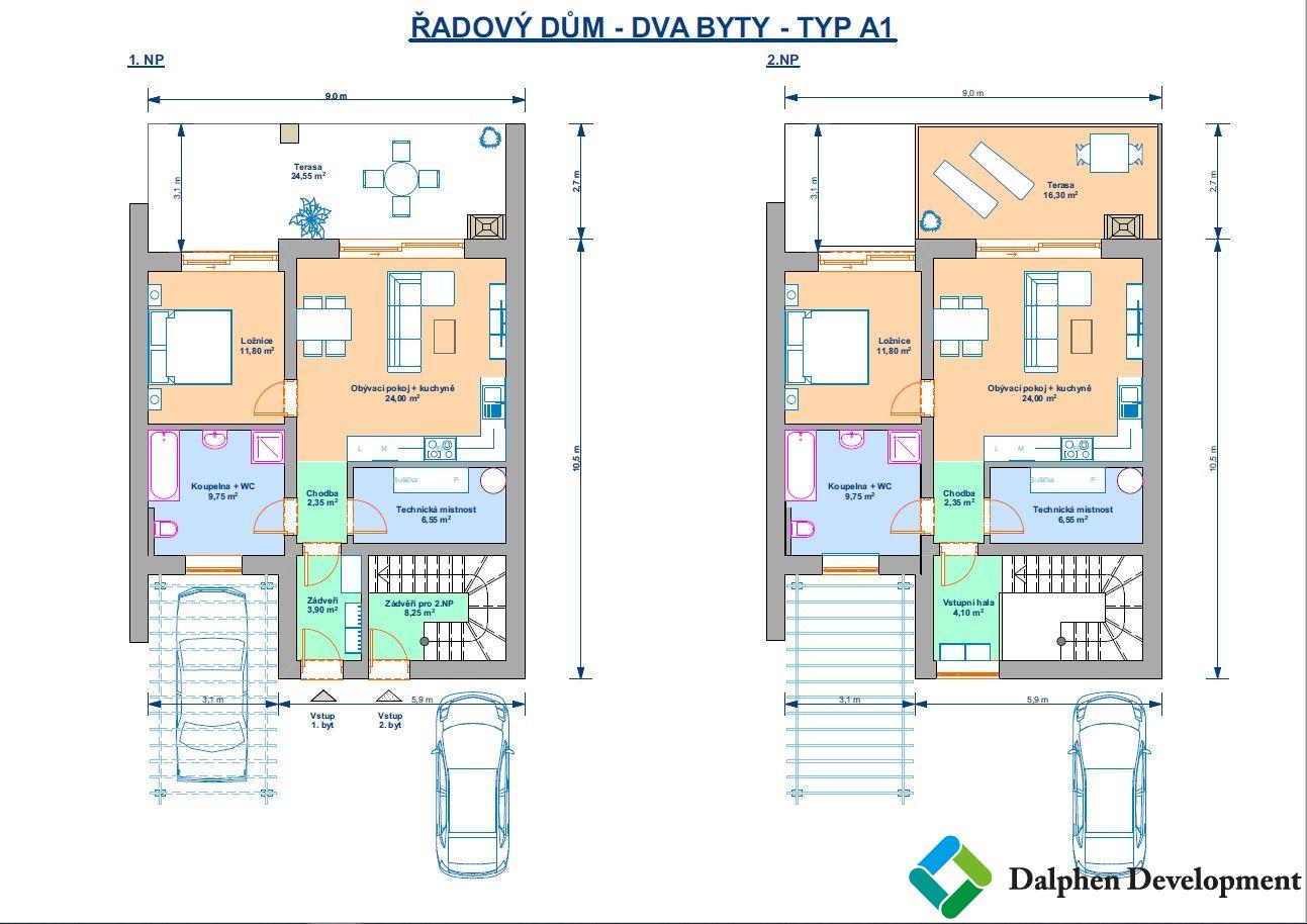 Nabízíme novostavbu bytové jednotky v řadovém domě na klíč, umístěné ve 2. NP, která je součástí developerského projektu ve městě Loučná nad Desnou, část obce Kociánov. Lokalita je charakteristická svou blízkostí k nejvyššímu vrcholu Jeseníků Pradědu a přibližně 10minutovou dojezdovou vzdáleností do lázeňského centra Velkých Losin. Typově se jedná o dvoupodlažní řadový dům s pultovou střechou, moderního vzhledu a praktického dispozičního řešení. V rámci projektu Rezidence Loučná je objekt koncipován jako součást zástavby čtyř řadových domů. Bytová jednotka nabízí komfortní bydlení pro pár či rodinu s jedním dítětem, přičemž je kladen důraz na maximální využití prostoru. Dispoziční uspořádání je 3+kk s podlahovou plochou 66 m. Ze zádveří je vstup do obytné části, pokoje a koupelny s WC, jejíž součástí je také technická místnost. Zdroj tepla je umístěn právě v této technické místnosti, kde se počítá i s prostorem pro pračku a případně sušičku. Součástí bytové jednotky je prostorný balkon o výměře 16,5 m, který poskytuje příjemný venkovní prostor pro relaxaci. K jednotce dále náleží parkovací stání. Dle zvolené varianty je alternativně možné řešení s vlastní zahradou a terasou u jednotek v 1. NP. V rámci III. etapy výstavby budou realizovány celkem čtyři řadové domy v jedné uliční řadě. V dosahu se nachází kompletní občanská vybavenost při zachování výhod klidné části obce. Budoucím majitelům se tak nabízí kombinace kvalitního bydlení a rekreačního zázemí v bezprostředním kontaktu s přírodou a zároveň s dobrou dopravní dostupností směrem na města Šumperk či Bruntál. Projekt nabízí také možnost výběru dalších dispozičních či technických konfigurací. Uvedená prodejní cena je včetně DPH. Detailní informace o projektu, standardech a možnostech úprav vám rádi poskytneme.