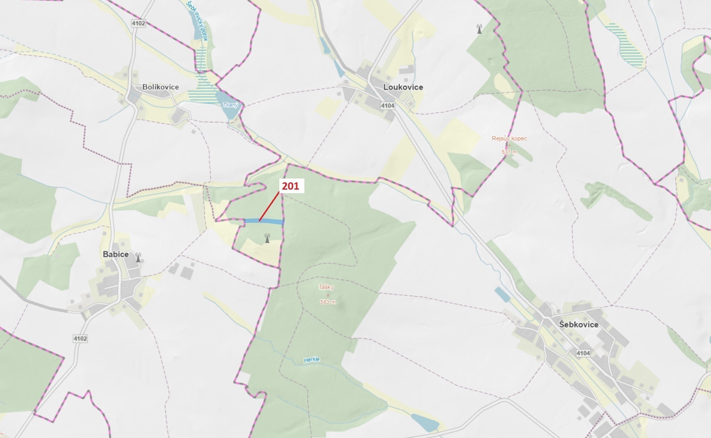 Lesní pozemek o výměře 7 796 m2, parcelní číslo 201, podíl 1/1, katastrální území Loukovice, obec Loukovice, obec s rozšířenou působností Třebíč, okres Třebíč, Kraj Vysočina.