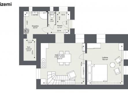 Exkluzivní nabídka. Nabízíme ke koupi rodinný dům, polohou v klidné oblasti původní zástavby rodinnými a rekreačními domy obci Louňovice, na samém okraji přírodní rezervace Voděradské bučiny. Jedná se o samostatně stojící, dvoupodlažní (přízemí a obytné podkroví) dům obdélníkového půdorysu s přístavbou, o dispozici 5+kk a podlahové ploše 110 m2. V přízemí se nachází zádveří, obývací pokoj s jídelnou a kuchyňským koutem, dále pokoj využívaný jako ložnice. Z obývacího pokoje je přístupné po lomeném schodišti obytné podkroví, které nabízí 3 samostatné pokoje a WC. V přízemí je zároveň koupelna (sprchový kout, umyvadlo), technická místnost a samostatné WC. Dům prošel v roce 2002 rekonstrukcí vnitřních prostor včetně realizace přístavby. Konstrukce domu je cihlová bez zateplení, okna dřevěná, v patře plastová, střešní krytina kanadský šindel. Vytápění zajišťuje plynový kotel s rozvodem do radiátorů, teplou vodu kombinovaný bojler. Zajištění domu je mechanické. Jako podlahové krytiny jsou použity keramická dlažba, linoleum a koberce. Z inženýrských sítí je zaveden vodovod, elektřina, kanalizace a plyn. Na pozemku je k dispozici studna. Na pozemku se zároveň nachází zděná, částečně podsklepená kůlna, která je vnitřně rozdělena na úložné prostory a sklep. Zahrada je rovinatá, relaxační. Obec Louňovice se nachází na východním okraji Prahy mezi obcemi Mukařov a Jevany. Školy a školky jsou dostupné v místě nebo v blízkých Říčanech, dopravní dostupnost autem i autobusem. Pro více informací nebo dojednání prohlídky kontaktujte makléře.