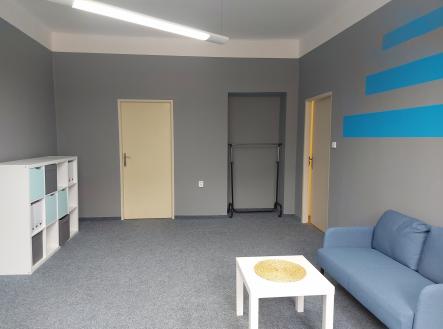 Soubor dvou samostatných kanceláří se zázemím o celkové výměře 48,3m2 v patře komerčního domu, ve kterém je provozována jak obchodní tak kancelářská činnost. V kancelářích je nové osvětlení, koberec, síť pro internetové připojení. První kancelář, přístupná ze společné chodby v patře, má výměru 16,6m2. Druhá kancelář, se vstupem ze stejné chodby, má výměru 23,8m2. Na tento prostor navazuje menší místnost s kuchyňkou o výměře 8m2. Zázemí- WC se nachází na stejném patře a je společné i pro sousední kancelář. Zálohy na topení, vodu, elektřinu i odpady činí 5.000Kč/měs. Kauce 25.000 Kč + provize pro RK. Prostor volný ihned.