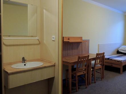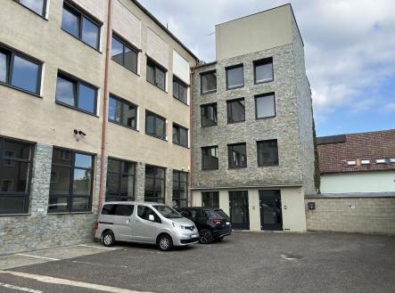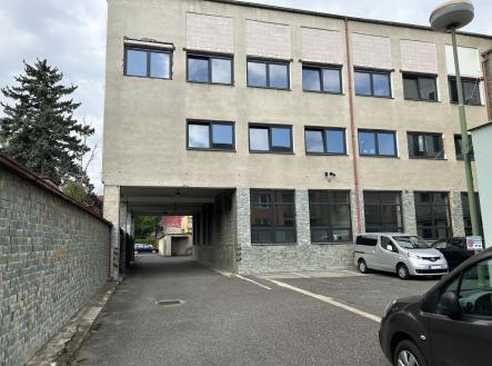 Prostorné garáže, sklad, dílny (I.NP), ubytovna (II.NP), moderní plně zařízené kancelářské prostory a funkčně navazující podkrovní místnost (III.NP), to vše nabízí víceúčelový objekt, který se nachází v širším centru města. Konstrukci obdélníkové budovy z roku 1975 tvoří skeletový železobeton, ve vyšších patrech s výplňovým zdivem. Plochá střecha s živičnou krytinou a obvodové stěny jsou zateplené, okna i dveře mají termoizolační skla, centrální vytápění je zajištěné kotlem na tuhá paliva, systém ohřevu vody je kombinovaný. Napojení na IS elektro, kanalizace, voda, IT. Okolní zástavba je smíšená, převážně bytové, rodinné domy a administrativa. Přístup k nemovitosti je po místní komunikaci, dále pod budovou jiného vlastníka (právně ošetřeno). Výhodou objektu je dostatečný prostor pro parkování na vlastním pozemku a komfortní vjezd do prostorných garáží, vybavených zvedací technikou, jeřábem a hydraulickým zvedákem. Pro pohodlný přístup do reprezentativních administrativních prostor ve III. NP s podlahovou plochou 546 m2 je uživatelům budovy k dispozici moderní výtah. Druhé podlaží, ubytovnu, tvoří kromě společenské místnosti a provozních prostor, včetně kuchyňky a recepce, 10 vybavených pokojů, z nichž dva mají každý vlastní koupelnu a příslušenství. Celková plocha všech podlaží je 1543 m2, velikost pozemku 1252 m2. Chybí Vám další informace k objektu nebo máte zájem o prohlídku, kontaktujte nás.