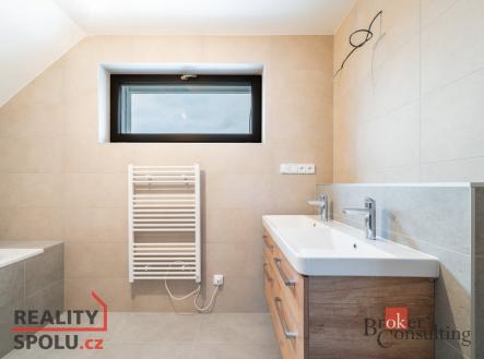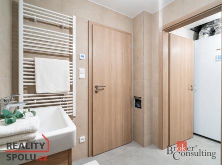 Nabízíme Vám k prodeji pasivní rodinný dům se zahradou a garáží v klidné části obce Lovčice. Výhodou této nemovitosti je zejména její energetická nenáročnost a také strategická lokalita. Jedná se o zděnou stavbu (Ytong) se dvěma nadzemními podlažími. Tato novostavba o dispozici 5+kk se nachází na pozemku o rozloze 665 m2, přičemž celková plocha domu činí 164,8 m2. V přízemí se nachází prostorný obývací pokoj spojený s kuchyní (41,1 m2) a vstupem na terasu (40 m2), dále je zde místnost, která může sloužit jako pokoj pro hosty či pracovna (11,8 m2), koupelna se záchodem (4,6 m2), technická místnost (2,9 m2) a ještě jedna menší místnost pod schody (4,0 m2). V prvním patře jsou dva pokoje s vlastní šatnou (17,8 m2 a 16,0 m2), dále ložnice (16,0 m2) se samostatnou šatnou (3,0 m2) přes chodbu a také druhá koupelna (6,1 m2). Jistě také oceníte pudní prostor o velikosti cca 40 m2. U domu se nachází také prostorná garáž se skladem zahradního nářadí (28,5 m2), kde je uložena technologie FVE s bateriovým úložištěm. V současné době ještě probíhají terénní úpravy a výstavba plotu. Dům využívá špičkové technologie, jako je rekuperace s tepelným čerpadlem pro ohřev TUV (objem zásobníku 180 l) s jednotkou pro chlazení v letních měsících, kvalitní izolace – zateplení stěn polystyrenem (30 cm), zateplení podlahy polystyrenem (24 cm), zateplení střechy minerální vatou (46 cm), plastová okna s trojskly a venkovními elektricky ovládanými žaluziemi, elektrické podlahové topení, na střeše domu je nainstalována fotovoltaická elektrárna o výkonu 10 kWp, která v roční bilanci dokonce vyrábí více energie, než dům spotřebuje a velká část spotřeby elektřiny je díky tomu pokryta. Odvod odpadních vod je napojen na veřejnou kanalizaci. Hospodaření s dešťovou vodou pro zálivku je řešen podzemní nádrží o velikosti cca 3,7 m3. V domě je zaveden optický kabel pro moderní internetové připojení a také příprava rozvodů pro zabezpečení domu. V Lovčicích se nachází např. mateřská a základní škola, pošta, sportoviště, obchod s potravinami a restaurace. Pro další služby a vybavenost mohou obyvatelé využít blízká spádová centra, jako je Chlumec nad Cidlinou, vzdálený pouhých 6 minut jízdy autem nebo Hradec Králové, kam se díky dálnici dostanete za půl hodiny a do Prahy vám cesta zabere cca 40 min. Tento pasivní dům vám zajistí komfortní a úsporné bydlení, k prodeji jsou celkem čtyři pasivní domy o stejných dispozicích a stejné konstrukci.