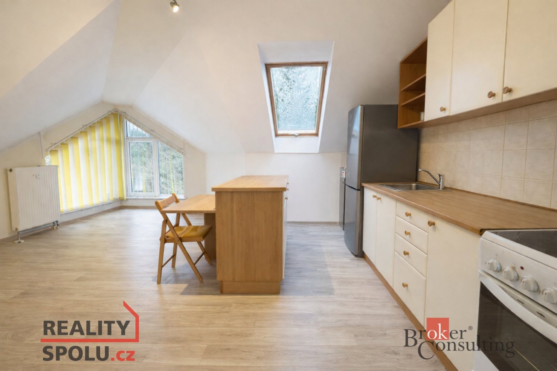 Pronájem bytu 2+kk, 42 m² – ideální pro jednotlivce nebo pár Nabízíme k pronájmu světlý byt o dispozici 2+kk s celkovou plochou 42 m², nacházející se ve 4. patře bytového domu (bez výtahu). Byt disponuje: chodbou koupelnou s vanou a WC jedním pokojem s vestavěnou šatní skříní obývacím pokojem s kuchyňskou linkou Byt je vybaven: ledničkou myčkou na nádobí pračkou samostatným elektrickým sporákem s troubou K domu náleží: společná sušárna v suterénu společná kočárkárna / kolárna v přízemí domu zahrada okolo domu parkovací stání v těsné blízkosti Okolí: Veškerá občanská vybavenost – zastávka MHD (autobus i vlak), škola, školka, obchody, dětská hřiště. Byt je vhodný i pro malé domácí mazlíčky. Cena pronájmu: 15 000 Kč/měsíc včetně poplatků za vodu, topení a společné prostory. Elektřina se přepisuje na nájemníka (cca 1 200 Kč/měsíc). Před předáním bytu se skládá pronajímateli vratná kauce ve výši 20 000 Kč a provize RK ve výši jednoho nájmu + DPH (18 150 Kč) Pro více informací a prohlídku nás kontaktujte.