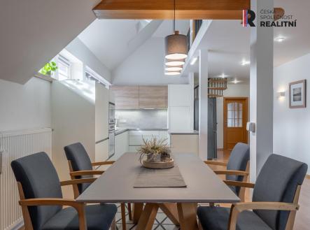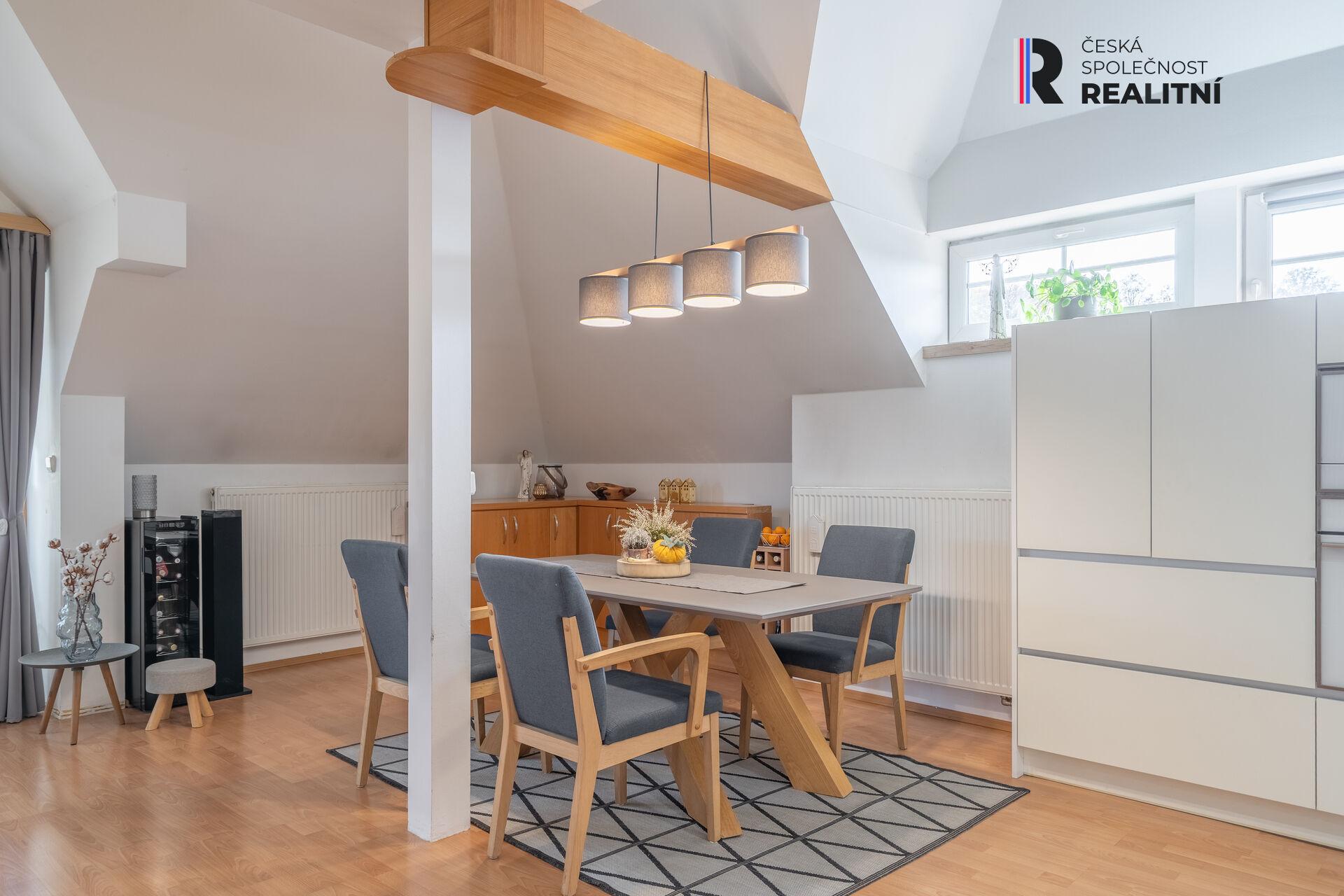 Nadstandardní byt 4+kk s galerií a terasou – Luhačovice, Masarykova ul. Výjimečná kombinace prostorného bydlení, soukromí a lázeňského klidu. Prodej prostorného a nadstandardně řešeného bytu o celkové ploše 180 m² + terasa 7 m², nacházejícího se ve 3. podlaží cihlového domu z roku 2000, Luhačovice – ul. Masarykova. Dům má pouze 5 bytových jednotek, byt zaujímá celé patro a poskytuje tak naprosté soukromí, klid a pocit rodinného domu. Dispozice a vybavení: Byt prošel kompletní renovací v roce 2016 a je připraven k okamžitému užívání bez dalších investic. Dispozice je rozdělena do dvou úrovní: Hlavní úroveň (3. NP): • předsíň • otevřená obytná místnost s jídelní částí, kuchyňským koutem a obývací částí • pokoj • ložnice se šatnou • koupelna s vanou a toaletou • samostatné WC • prádelna + prostor pro domácí práce • terasa orientovaná jihovýchodně Galerie nad bytem: • pokoj • koupelna se sprchovým koutem a WC • otevřená galerie s knihovnou a posezením K bytu náleží: • 2 sklepy v přízemí (2,52 m² + 5,04 m²) • 2 soukromá garážová stání + 1 venkovní parkovací místo • společná kolárna v přízemí Interiér bytu působí velmi útulně, s domácí atmosférou a příjemným světlem díky orientaci bytu na všechny světové strany. Díky světlé orientaci, víceúrovňovému bytu a zeleni v okolí působí byt vzdušně a velmi příjemně. Vhodné jak k trvalému bydlení, tak jako lázeňský apartmán pro víkendové nebo rekreační využití. Umístění v rámci Luhačovic: Ulice Masarykova patří k vyhledávaným lokalitám města – pár minut chůze od lázeňské kolonády, parků, restaurací a kulturního centra avšak v klidné části Luhačovic. • centrum města – cca 5 minut pěšky • lázeňský park a prameny – cca 7 minut • přírodní stezky, cyklotrasy, les – do 300 m Byt nabízí ideální polohu pro ty, kteří hledají kombinaci městského komfortu a klidu přírody. Luhačovice – město pohody a energie: Luhačovice jsou čtvrté největší lázně v Česku a největší moravské lázeňské město. Nabízejí jedinečnou atmosféru – architekturu Dušana Jurkoviče, lázeňské parky, kolonády i minerální prameny s léčivými účinky. Město má ideální mikroklima – čistý vzduch, zelené okolí Vizovických vrchů a přírodní rezervace Bílé Karpaty. Pro obyvatele i návštěvníky město nabízí: • bohatý kulturní život (festivaly, koncerty, kolonáda) • široké možnosti relaxace, wellness a lázeňských služeb • výborné restaurace, kavárny, cukrárny • kompletní občanskou vybavenost (ZŠ, MŠ, pošta, obchody, lékaři) • pestré sportovní vyžití: turistika, cyklostezky, koupaliště, tenis Luhačovice jsou místem, kde se snoubí historie, klid a zdravý životní styl – ideální jak pro aktivní páry a rodiny, tak pro ty, kteří hledají odpočinek a duševní pohodu. Byt je připraven k prohlídkám po předchozí domluvě. "Tento byt není jen místem k bydlení – je to prostor, který dýchá klidem, světlem a harmonií lázeňského města."