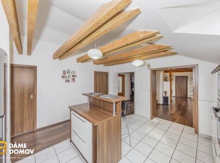 Hledáte domov pro opravdu velkou rodinu, klidně dvě generace, s dalším velkorysým prostorem navíc nebo možností podnikání? Tato nemovitost v obci Lukoveček u Fryštáku nabízí kombinaci klidu, pohodlí i praktického zázemí velkého rodinného domu se zahradou. V přízemí domu najdete dvě nadstandardně velké garáže, prostorné sklepní a skladovací prostory - několik místností, technické zázemí s prádelnou a sušárnou, vlastní „výčep“ s posezením, sociální zařízení a kuchyňku. V 1. patře je dispozičně řešený byt 5+1 s prostornou centrální obytnou částí, výstupy na terasy (směrem do zahrady i do ulice), velký obývací pokoj, ložnice s vlastní koupelnou, další tři ložnice, kuchyň, komora, velká koupelna se sprchovým koutem, vanou (vířívkou), WC, a samostatné WC pro hosty. Ve 2. patře se nachází podkrovní byt 4+1 – kuchyň s ostrůvkem, velký obývací pokoj, tři ložnice, šatna, technická místnost a koupelna se sprchou, vanou a WC. Tento byt má samostatný elektroměr a hygienické zázemí. Dům je zděný, zateplený, s plastovými okny. Vytápění je kombinované – podlahové + radiátory. Přízemí a 1. patro využívají společný kotel, podkrovní část má vlastní měření. Napojení na obecní vodovod, tříkomorový septik, v obci se připravuje kanalizace (počítá se s připojením domu). Plocha 1. NP 211 m2 Plocha 2. NP 190 m2 + balkón 40 m2 Plocha 3. NP 180 m2 Obec Lukoveček leží klidně v blízkosti Fryštáku, s výbornou dostupností do Zlína i Holešova. V okolí je příroda – za zahradou navazuje louka a les, což zajišťuje soukromí a klid. Zahrada má rozměr takový, abyste nebyli přítěží údržby, ale zároveň měli prostor pro relaxaci, hobby i zahradní aktivity. Díky brance přímo na stezku do lesa a směrem k Rusavě je tento dům ideální pro milovníky přírody i aktivní rodiny. V obci je základní infrastruktura, a zároveň do Zlína či Holešova dojedete pohodlně. Tento dům nabízí komfort velkého rodinného bydlení včetně dvougeneračního, ideální v kombinaci s podnikáním (sklad, dílna, výdejna). Pokud Vás nabídka zaujala, neváhejte mě kontaktovat pro více informací či domluvení prohlídky. S financováním Vám pomůže náš hypotéční specialista. Radek Motyka & Dáme domov