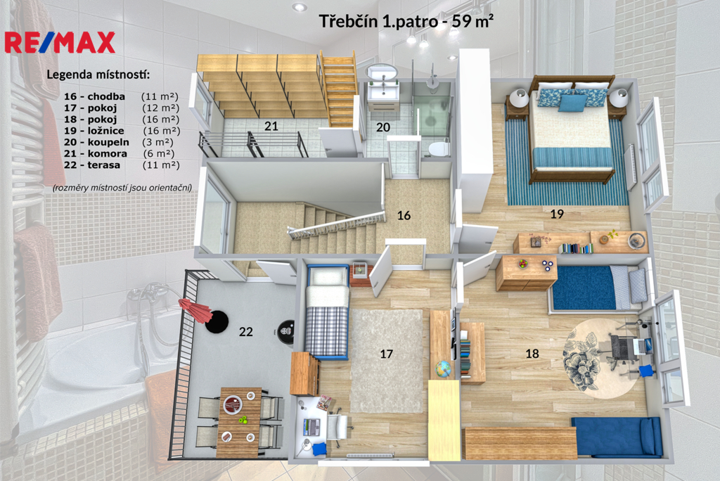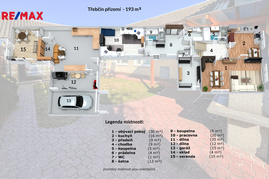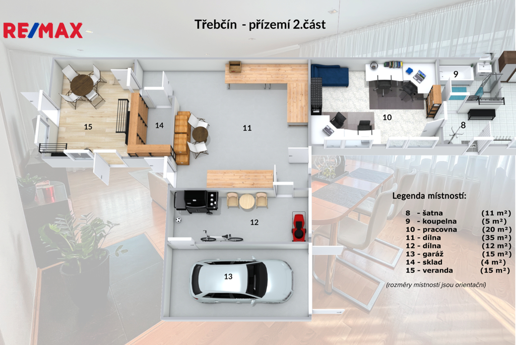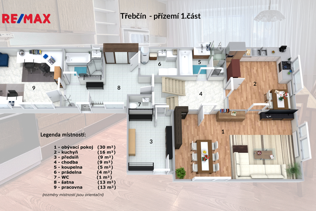 V exkluzivním zastoupení majitele nabízíme k prodeji dům se zahradou v Třebčíně nedaleko Olomouce. Vícepodlažní dům s půdou je částečně podsklepený s garáží, dílnou a skladovými prostory. Vytápění je ústřední s plynovým kotlem umístěným v suterénu a dále je provedena příprava pro krbová kamna. Dům je napojen na veřejnou kanalizaci, vodovod, plyn a elektřinu. V domě jsou plastová okna, laminátové podlahy a sádrokartonové podhledy. V 1. NP se nachází obývací pokoj s jídelnou, kuchyně, koupelna (vana, sprcha, umyvadlo, WC), vstupní hala, WC, prádelna. V přístavbě 1. NP se nachází pracovna, předsíň, šatna, koupelna (není dokončena, příprava pro sprchu, umyvadlo a WC). V této přístavbě lze řešit samostatnou obytnou jednotku nebo prostor pro podnikání. Ve 2.NP se nachází 3x ložnice, koupelna (sprcha, umyvadlo), skladový prostor s možným užitím jako šatna. Půda je svojí rozlohou a charakteristikou určená k případné půdní vestavbě. Obrazová příloha obsahuje také návrh možného řešení úprav domu. Občanská vybavenost: • zdravotní středisko s lékařskými ordinacemi - praktický a dětský lékař, stomatolog, rehabilitace a lékárna • mateřská, základní a strojírenská střední škola • prodejna potraviny Billa a Hruška • retail park • několik restaurací • sportovní hala, fotbalové hřiště a další sportoviště • dále Lázně Slatinice (do 2 km) V Lutíně a přímo i v Třebčíně je mnoho pracovních příležitostí, zejména ve strojírenských firmách. Třebčín je klidné místo na bydlení blízko Olomouce a Prostějova a je jednou z obcí mikroregionu Kosířsko jehož součástí je přírodní park Velký Kosíř se stejnojmenným vrcholem Hané v lokalitě Drahanské vrchoviny pro možnou rekreaci v přírodě. Je zde výborné dopravní spojení autobusem i vlakem do Olomouce a Prostějova anebo autem po dálnici. Více informací u makléře.