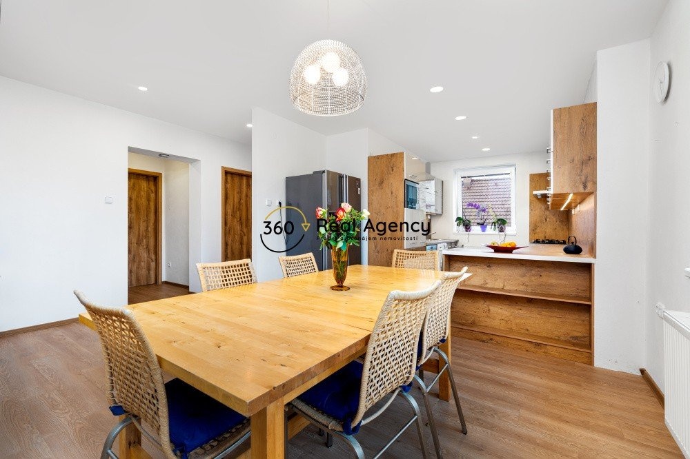 Na klidném místě v srdci východních Čech a na pomezí Středočeského a Královéhradeckého kraje vznikl domov, který v sobě spojuje prostor, tradici i moderní komfort. Rodinný dům o dvou velkých samostatných bytových jednotkách byl navržen s promyšleností, jakou u venkovských sídel jen tak nenajdete – ideální pro dvougenerační bydlení, propojení rodiny nebo spojení bydlení s podnikáním. Za jedním hlavním vstupem se skrývají dvě bytové jednotky o podlahové ploše více než 120 m², každá s vlastní atmosférou a charakterem, oddělené vnitřním schodištěm. Horní byt 4+1 + jídelna | 120 m² Po kompletní rekonstrukci. Jeho srdcem je světlá kuchyně s jídelnou, místo ranního setkávání i rodinných obědů. Oddělený obývací pokoj nabízí klid pro odpočinek, tři další pokoje pak flexibilní využití – ložnice, dětský pokoj, pracovna. Samostatná koupelna, toaleta a spíž doplňují praktické zázemí. Přízemní byt 4+1 + jídelna | 125 m² Nabízí tři prostorné ložnice, samostatnou kuchyň s jídelnou a obývací pokoj s krbovými kamny – teplé srdce celého prostoru. Samostatná koupelna a toaleta zajišťují plný komfort. Dům je napojen na všechny inženýrské sítě – obecní vodovod, spádovou kanalizaci, plyn i elektřinu. Vytápění zajišťuje nový kondenzační plynový kotel (hlavní zdroj) a jako záloha je zde automatický kotel na tuhá paliva (dřevo/hnědé uhlí). Dalším, a tedy třetím záložním zdrojem jsou krbová kamna. Plastová okna, nové rozvody v mědi, elektřina i veškeré revize RD jsou v pořádku. Energetický štítek je nyní třídy D, po provedení zateplení (odhadované náklady cca 350 000 Kč) lze dosáhnout třídy B, což je ideální vstup do programu Nová zelená úsporám apod. Kromě obecního vodovodu má dům dvě vlastní studny – jedna s ruční pumpou je napojená přímo do domu s přepínáním mezi zdroji. Úspora, nezávislost a funkční řešení. Stodola / konírna s půdorysem 300 m² (2 podlaží = 600 m²) Na pozemku se nachází dvoupodlažní stodola historicky využívaná jako stáj pro 10 koní. Stodola disponuje klenutými stropy, silným zdivem a napojením na elektřinu, kanalizační přípojku i možnost připojení obecní vody. Vhodné jako stáje, sklad, dílny, drobná výroba, ateliéry nebo pro rekreační/podnikatelské využití. Pozemek o rozloze téměř 2 000 m² poskytuje soukromí i prostor pro relax. Půda je úrodná černozem, vhodná pro pěstování, sad, bylinky. Před domem je terasa s krbem – prostor pro letní posezení, grilování i rodinné oslavy. Možnost přikoupení sousedních pozemků cca 2400 m² – 4 000 m² ideální jako výběh pro koně nebo rozvojový potenciál (změna funkce na stavební parcelu je reálně proveditelná). Obec s dlouhou historií, silným komunitním duchem a velmi dobrou dopravní dostupností. Veškerá základní občanská vybavenost: potraviny, pošta, MŠ, OÚ, veterinární ordinace, kostel a MHD spojení na Chlumec nad Cidlinou i Nový Bydžov. V okolí je bohatá příroda, cyklostezky, lesy, a v létě možnost koupání v blízkých pískovnách – klidné a zdravé prostředí pro rodinu i rekreaci.