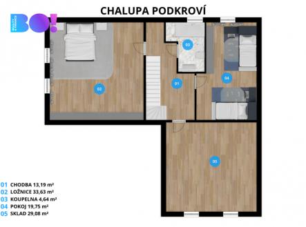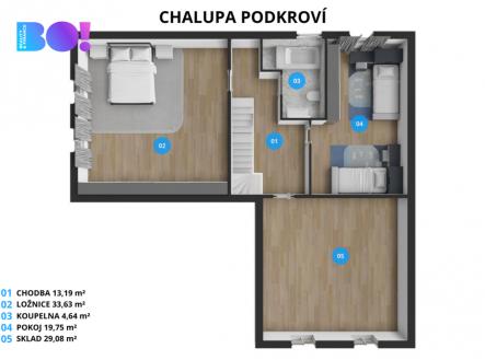 BO! Vám nabízí novou poloroubenou chalupu v obci Malá Morava. V přízemí se nachází vstupní chodba, obývací místnost s výstupem na jihovýchodní terasu, koupelna, WC, komora, prostor pro saunu a vířivku, technická místnost a dřevník. V podkrovní části je prostor pro dobudování pěti pokojů. Chalupa je ve fázi hrubé stavby s osazenými kastlovými okny s vakuovanými skly a eurookny ve zděných a neroubených částech chalupy. V případě zájmu zajistíme dokončení stavby dle Vašeho požadavku. Tato chalupa je ideální jako rekreační objekt, ale i k trvalému bydlení pro ty, kteří hledají spojení tradice a přírody. Velkou předností této stavby jsou konstrukčně lepené trámy, které oproti klasickým trámům nepraskají, nedilatují a mají lepší tepelně izolační vlastnosti. Pokud Vás tato nabídka zaujala, neváhejte nás kontaktovat.