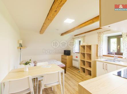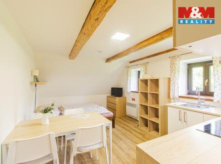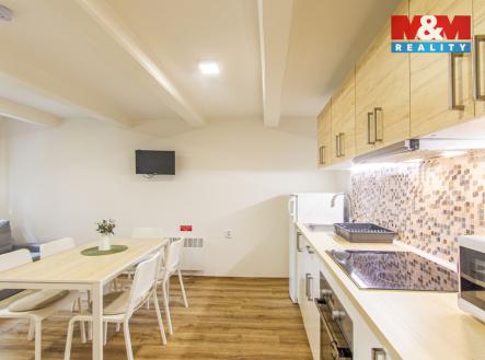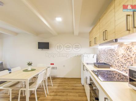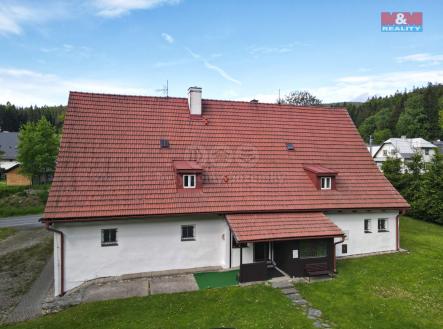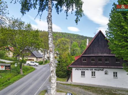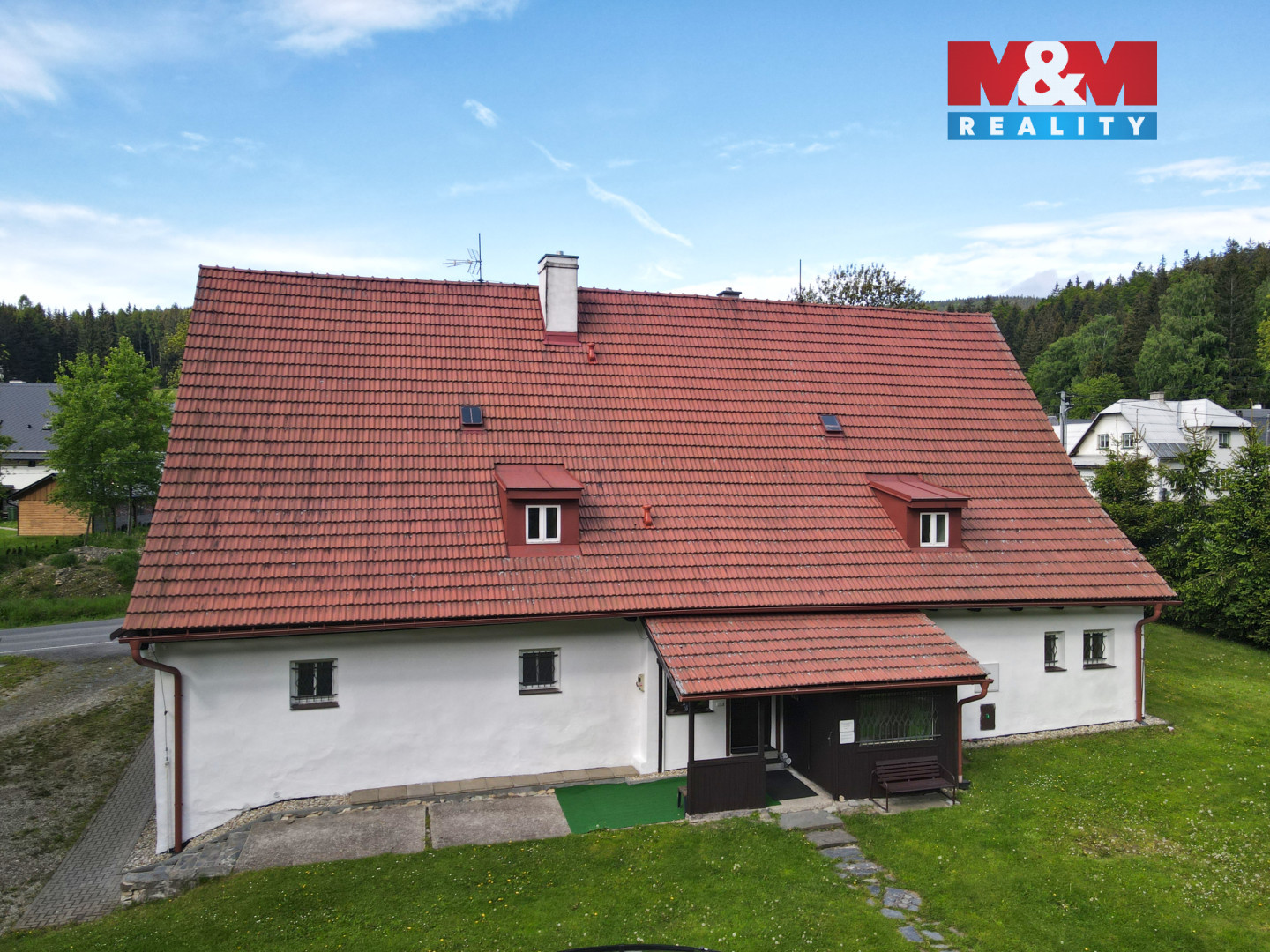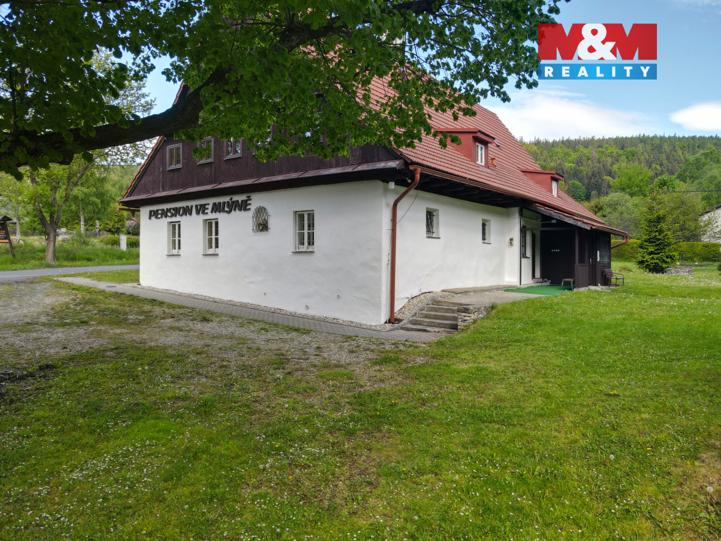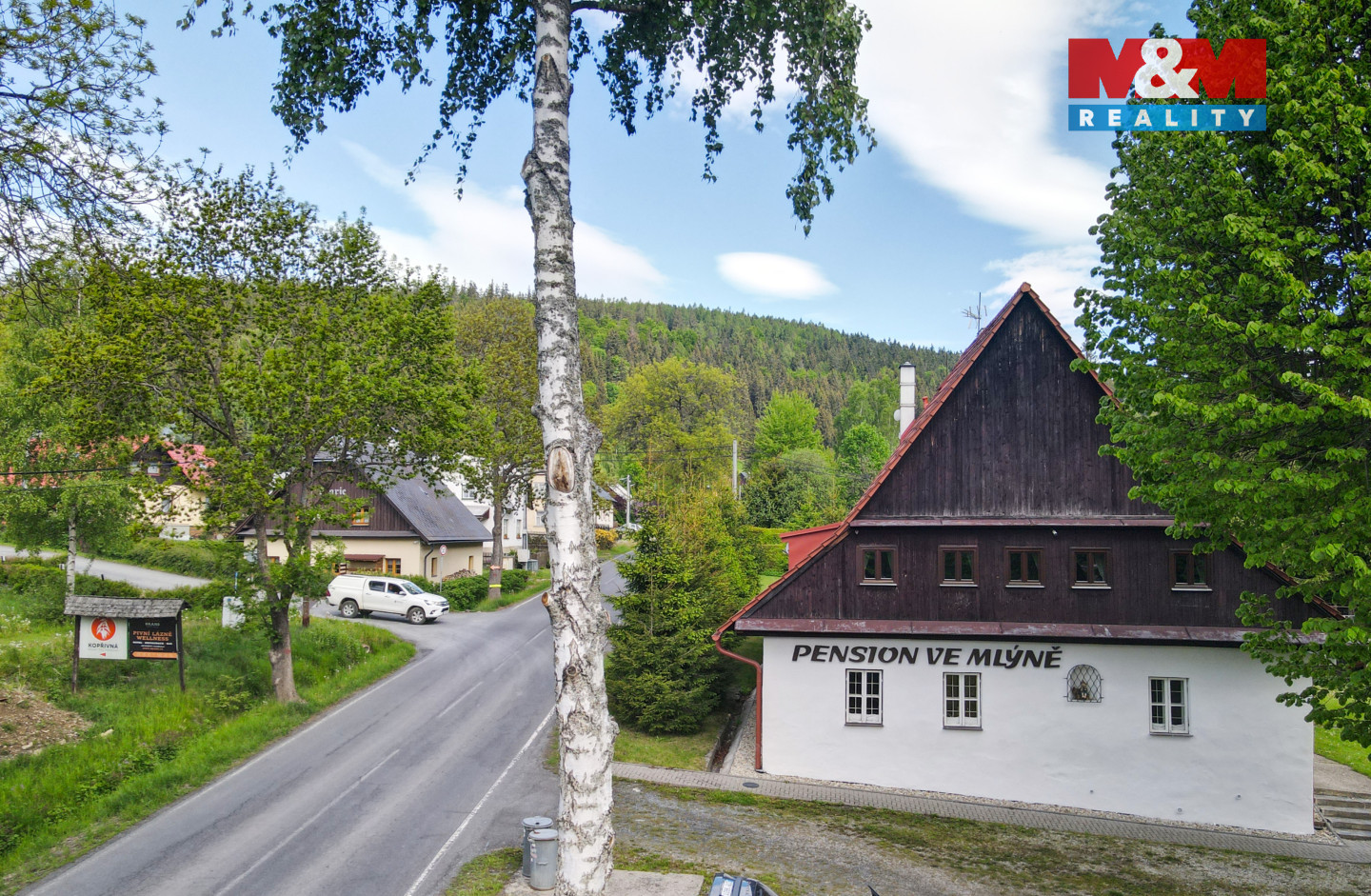 Nabízíme k prodeji stylový rodinný penzion o užitné ploše 350 m2 a zahradou o ploše 3 377 m2 situovaný v krásné lokalitě Malé Morávky, jež je vyhledávaným turistickým střediskem. Penzion je provozován celoročně, ale velkou výhodou je jeho poloha, neboť se nachází v naprosté blízkosti (300m) od lyžařského areálu Kopřivná. Penzion byl v roce 2020 rekonstruován a nabízí 5 útulných apartmánů po dvou pokojích. Každý apartmán disponuje svou vlastní kuchyňskou linkou a sociálním zařízením. V přízemí se nachází byt majitele o dispozici 3+1. Přízemí je zařízeno velkou společenskou místností, lyžárnou a sušárnou. Součástí prodeje je i zděná stodola, která je v současnosti využívána jako kolárna a technické zázemí pro uskladnění zahradního nářadí. Na zahradě se nachází vyhřívaný bazén, hřiště, ohniště, dětské hřiště apod. V současnosti je penzion úspěšně provozován po celý rok a může tak sloužit k okamžitému zajištění stálého příjmu již dnes je penzion ze 70% obsazen na zimní sezónu.