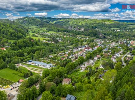 Nabízíme k prodeji stavební parcelu v lukrativní části Malé Skály se stavebním povolením a projektem moderního rodinného domu. Nízkoenergetický jednopodlažní rodinný dům je navržen s železobetonovou konstrukcí převážně zapuštěné do terénu. Nad stropem je zelená střecha navazující na přírodní terén. Ve střeše jsou zakomponovány světlíky s výhledy na oblohu. Doplňkovou konstrukcí je přístřeší nad prostornou terasou s venkovním posezením. Terasa na terénu před vstupem je z větší části krytá s navazujícím skladem pro zahradní nábytek a venkovním krbem. Dům splňuje požadavky na nízké provozní náklady a díky částečnému zapuštění do terénu nebude interiér přehříván v letních měsících. Samostatným objektem je sklad s garážovým přístřeším u vjezdu na pozemek. Z pozemku je krásný výhled na místní Pantheon, v obci je pak mnoho turistických cílů. Vhodné i k rekreaci díky krásám Českého ráje, Jizerské hory a Krkonoše v blízkosti, velké ski areály v dojezdové vzdálenosti 30 minut.