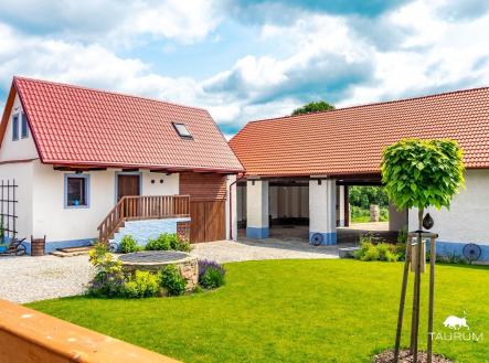 Představuji k prodeji kompletně zařízenou novostavbu rodinného domu s dalšími zrekonstruovanými doprovodnými stavbami, na adrese: Týniště 2 u Kutné Hory. Podívejte se na samostatnou webovou stránku odkaz ve videoprohlídce. Obec Týniště se nachází pár minut jízdy od Kutné Hory, přibližně hodinu jízdy autem od Prahy v pěkné rovinaté krajině. Samotný dům je na konci slepé ulice na velmi klidném místě. Dispozice: Nemovitost se sestává z několika staveb. Hlavní obytný dům je novostavba o dispozici 6+kk a užitné ploše 250 m2. Je dvoupodlažní v přízemí je obývací pokoj s kuchyní, jídelním koutem a kachlovou pecí, dále ložnice se šatnou, koupelna, toaleta a technická místnost. V patře jsou tři ložnice, obývací prostor a koupelna s toaletou. Dále je zde dům pro hosty se sklepem a garáží, který může sloužit například jako klubovna (v tomto domě je třeba dokončit interiér schody do patra a podlahovou krytinu v patře). Další stavbou je původní konírna, která dnes slouží jako prostor pro uskladnění techniky a nářadí. Na konírnu navazuje prostor připravený na vestavbu sauny a posledním objektem je opravdu velká původní stodola, která je stejně jako všechny doprovodné stavby zrekonstruovaná a je v ní příprava na vestavbu venkovní letní kuchyně a prostor pro promítání malé kino. Za touto stodolou je velká zahrada o výměře 4.600 m2 se samostatným elektricky ovládaným vjezdem pro vozidla. Celková výměra pozemku je 5.387 m2. Technické informace: Všechny obytné stavby a stodola jsou ve vynikajícím stavu a postaveny nebo zrekonstruovány ve vysokém standardu. Obytný dům je vytápěn pomocí elektrokotle a podlahových teplovodních těles. Okna v celém domě jsou plastová, opatřená trojskly. Dům je nově postaven z cihel, podlahy jsou betonové, kryté dlažbou a kvalitním vinylem, střecha je kryta pálenými taškami. Elektřina je k dispozici 230 i 400 V. Přímo na dvoře pozemku je vrt, ze kterého je přivedena voda do domu. Vedle vrtu na pozemku pod zemí je kvalitní výkonná filtrace vody a retenční nádoba na dešťovou vodu. Za domem je také původní kopaná studna, která dnes slouží jako druhý retenční prostor na dešťovou vodu ze stodoly. Odpady jsou svedené do čističky odpadních vod, která je umístěna taktéž za domem. Na domě je instalován kamerový systém. Dopravní dostupnost: Dům je dostupný autem (1h cesty z Prahy), parkovat je možné na vlastním pozemku, a to jak na vnitřním dvoře, tak i v garáži nebo vzadu na zahradě. Do obce jezdí autobus a v blízkosti domu se nachází také vlaková zastávka. Právní informace: Na domě nevázna žádná zástava ani jiné právní břemeno, dům je možné financovat hypotečním úvěrem. Dům se prodává včetně kompletního vybavení. Vzhledem k vynikající kvalitě a velikosti domu je možné dům využívat jako nadstandardní bydlení, rekreaci nebo například jako školící středisko, pořádání svateb, kurzů apod. Uvedené výměry jsou orientační