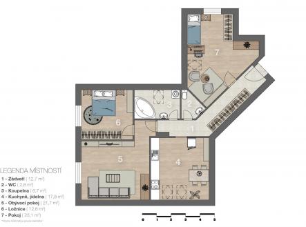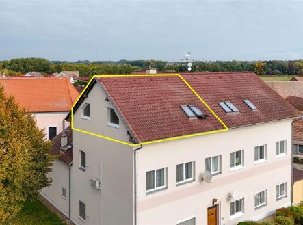 Nabízíme k prodeji atraktivní byt 3+1 v malebné obci Malešovice, nacházející se v okrese Brnovenkov v Jihomoravském kraji. Byt má dispozici 3+1 s užitnou plochou 97 m² . Vstupní chodba 12,7 m² je prostorná a zařízena šatním nábytkem na míru, který zde zůstává. Vpravo vstoupíme do dětského pokoje/pracovny 23,1 m². Dále je samostatná toaleta 2,6 m² a vedle na pravé straně chodby koupelna s vanou 6,7 m² (je zde pračka, sušička a plynový kotel Baxi). Na konci chodby vlevo pokračujeme do kuchyně s jídelnou 17,8 m². Naproti chodbě je ložnice 12,6 m² a obývací pokoj 21,7 m². Podrobně se můžete podívat na půdorys, fotografie a video prohlídku. Tento podkrovní byt, umístěný ve druhém patře cihlového domu, byl postupně rekonstruován od roku 2017. V roce 2022 byla provedena výměna plynového kotle. Měsíční náklady (plyn, el. ) 4 000,Kč. Fond oprav a společné prostory 3 200,Kč. Bytový dům disponuje vlastní studnou, platí se pouze stočné (zahrnuto v platbě SVJ), vodné nikoliv. V případě potřeby lze přepnout zdroj vody na městský vodovod. Bytový dům je revitalizován. Před nedávnem v bytovém domě proběhla výmalba. SVJ schválilo zbudování přístřešku ve dvoře pro kola, opravu vstupních dveří, aj. Občanská vybavenost: Mateřská škola: Malešovice, Základní škola: Loděnice, Pohořelice, Zdravotnictví: Pohořelice, Pošta: Malešovice, Úřady: Pohořelice. Malešovice jsou obec v okrese Brno – venkov v Jihomoravském kraji. Rozkládají se v Dyjskosvrateckém úvalu na okraji přírodního parku Niva Jihlavy. Obec žije bohatým kulturně společenským programem viz oficiální webové stránky obce. Rozhodně se jedná o atraktivní nabídku pro ty, kteří hledají byt v klidné a přírodně bohaté oblasti s rychlým připojením k dynamickému městskému životu. S financováním nemovitosti Vám rádi pomůžeme. Těším se na Vaše zavolání a na viděnou na prohlídce.