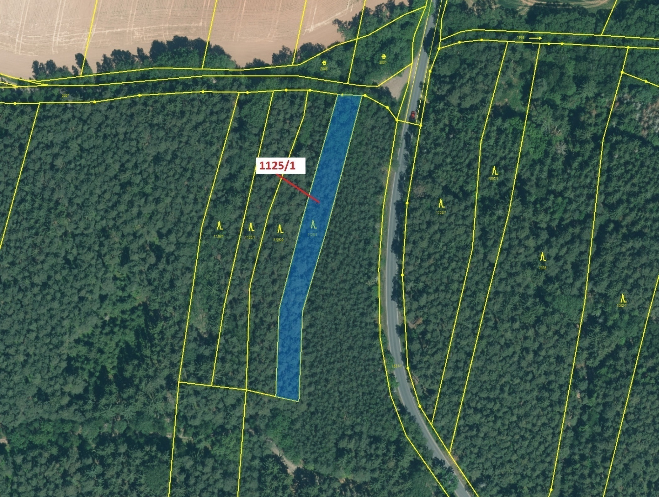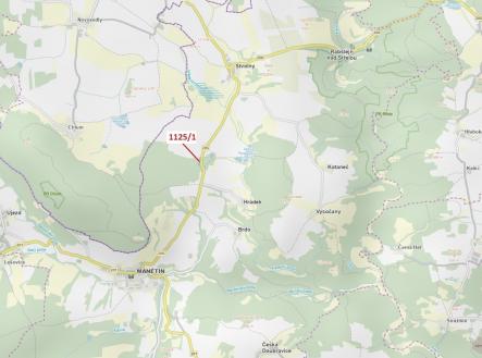 Lesní pozemek o výměře 1 988 m2, parcelní číslo 1125/1, podíl 1/1, katastrální území Stvolny, obec Manětín, obec s rozšířenou působností Kralovice, okres Plzeň-sever, Plzeňský kraj. Částečně po těžbě.