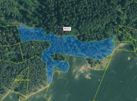 Lesní pozemek o výměře 12 307 m2, parcelní číslo 411/1, podíl 1/1, katastrální území Česká Doubravice, obec Manětín, obec s rozšířenou působností Kralovice, okres Plzeň-sever, Plzeňský kraj. Částečně po těžbě.