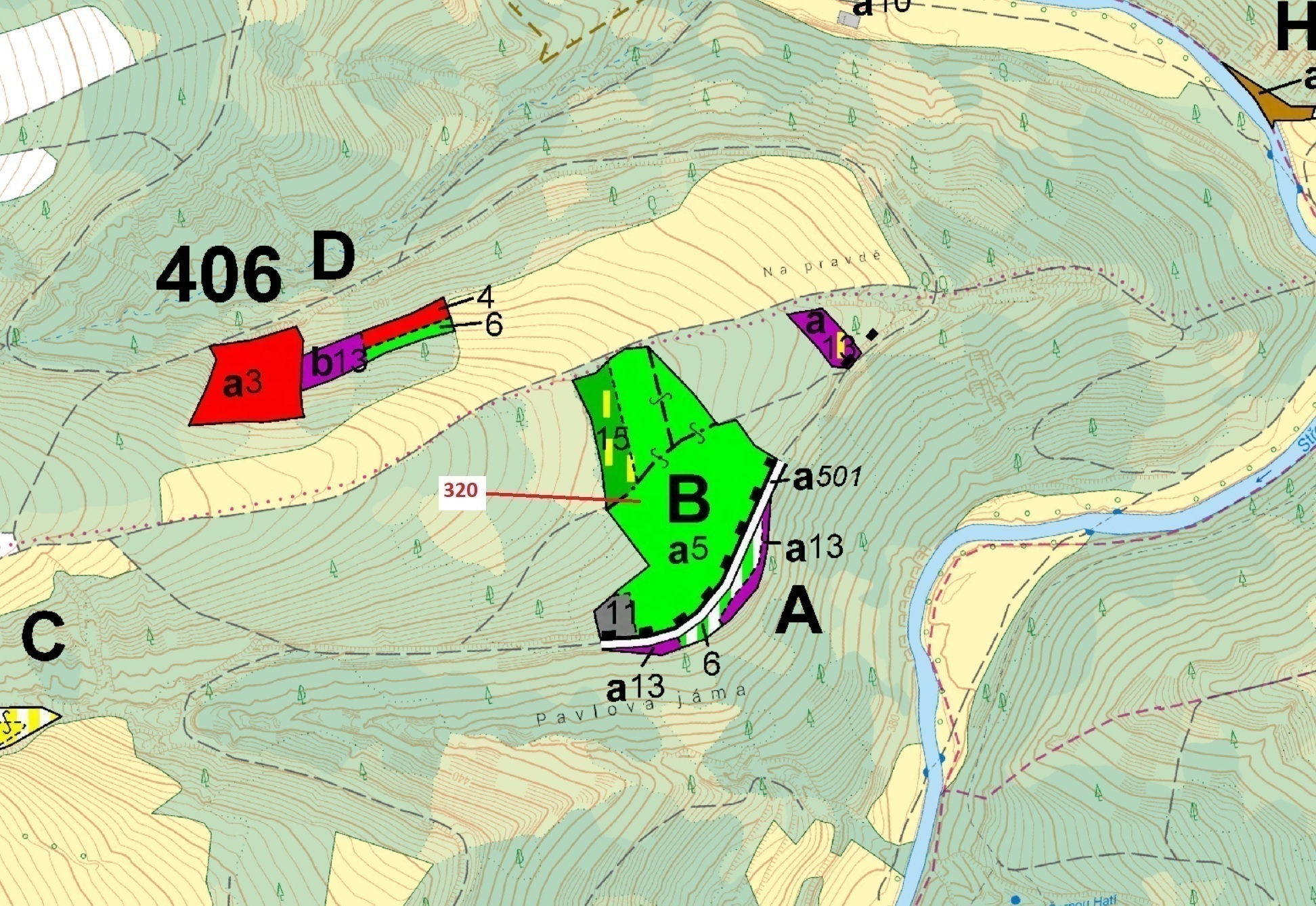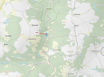 Lesní pozemek o výměře 25 896 m2, parcelní číslo 320, podíl 1/1, katastrální území Vysočany u Manětína, obec Manětín, obec s rozšířenou působností Kralovice, okres Plzeň-sever, Plzeňský kraj. Částečně po těžbě.
