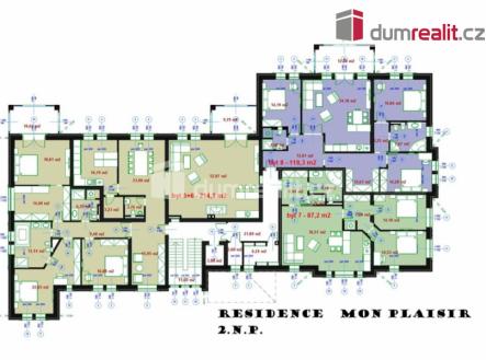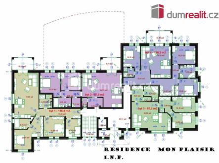 Naše společnost Vám zprostředkuje prodej luxusních bytových jenotek a apartamentů v residenci Mon Plaisir v Mariánských Lázních. Objekt je koncipován tak, aby uspokojil požadavky nejnáročnějšího klienta. Chtěli jsme pro Vás připravit něco výjimečného, proto jsme hledali lokalitu, která je v docházkové vzdálenosti do 15 min od hlavní kolonády a zároveň v plné míře nabízí to, co je pro Mariánské Lázně nejcennější – klidný pobyt uprostřed parků na čistém vzduchu překypujícím kyslíkem. Našli jsme místo u soutoku Úšovického a Třebízského potoka v lokalitě zvané Lunapark. Zde je stavební pozemek s původním historickým vodojemem zásobujícím dříve Mariánské Lázně pitnou vodou. Klenuté stropy vodojemu zachováváme jako historickou památku v podzemí novostavby residence. Příjezd vede po málo frekventované Třebízského ulici vedoucí směrem k obci Prameny. Pěší přístup do centra města vede lesoparkem po asfaltových cestách Třebízského ulicí kolem hotelu Parkhotel Saint Moritz ( kompletní balneoprovoz, bazén a restaurační provoz), Městského divadla N.V. Gogola na Hlavní třídu. Souběžně s ní je možné využít i druhou cestu – Chopinovo ulici vedoucí kolem tenisového areálu s lanovým centrem, hudební školy a hotelu Reitenberg na hlavní Kolonádu. Vydat se je možné i pěší upravenou parkovou cestou podél potoka a přes kolonádu Lesního pramene. Dům s výraznou architekturou nabízí ve čtyřech nadzemních podlažích 15 nadstandardních bytů odlišných velikostí a dispozičním řešení od plochy 78 m² do 215 m². Byty umístěné v 3. patře jsou řešeny jako mezonetové. Většina bytů má vlastní balkony s výhledem na okolní krajinu. V 1.PP se nachází garáže pro 11 osobních vozidel, wellness a krytý bazén. V objektu je osobní výtah. V historickém sklepě vodojemu je 15 chladných nevytápěných komor. Obytná podlaží a garáž jsou propojená domovním schodištěm a osobním výtahem. Pozemek domu poskytuje jak možnost rekreace na jeho jižní straně, tak dostatek parkovacích míst na straně severní. Doporučujeme. Ev. číslo: 626203.