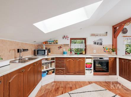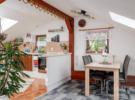 Nabízím k prodeji podkrovní byt 3 + 1 o výměře 119,30m2 v klidné lokalitě Mariánských Lázní. Byt se nachází ve 4. NP bez výtahu a prošel částečnou rekonstrukcí. Velkým benefitem této nemovitosti je nově udělané vytápění s dvěma možnostmi. Nejen, že se zde nachází krbová kamna, ale také elektrické vytápění v podlaze. V bytě není zaveden plyn. Bytový dům je zevnitř i shora zateplen a zároveň zde byla na jaře 2025 kompletně udělaná nová střecha. Jednotlivé místnosti jsou prostorné s velkým množstvím úložného místa na chodbě, kde se nacházejí vestavěné skříně. Byt disponuje dvěma předsíněmi, komorou na dřevo, vstupem na půdu a komorou vhodnou pro odkládání potřebných věcí. Je členěn na obývací pokoj, kuchyň a chodbu, které jsou průchozí, dále dětský pokoj, ložnici, koupelnu a oddělený záchod. Bytu je k dispozici sklep. Tato nemovitost je naprosto ideální pro vlastní bydlení či jako investice. Velkou výhodou tohoto bytu je nejen snadná dostupnost do centra (5 minut pěší chůzí), ale také do přírody. Z kuchyně bytu je pak výhled na sjezdovku. Nenechte si ujít tuto jedinečnou nabídku a ozvěte se mi. Ráda Vás touto nemovitostí provedu. ____________________________________________________________________________________________________________________ Let me introduce you to a 3 bedroom attic apartment (+ kitchen) with an area of 119.30 m2 in a quiet location in Mariánské Lázně. The apartment is located on the 4th floor without an elevator and has undergone a partial reconstruction. A great benefit of this property is the newly installed heating with two options. Not only is there a fireplace stove, but also an electric heating in the floor itself. The apartment does not have a gas. The apartment building is insulated from the inside and from above and at the same time a completely new roof was installed in the spring of 2025. The individual rooms are spacious with plenty of storage space in the hallway, where there are also built-in wardrobes. The apartment has two hallways, a wood room, an entrance to the attic and a room suitable for storing necessary things. It is divided into a living room, kitchen and hallway, which are walk-through, as well as a children's room, bedroom, bathroom and a separate toilet. The apartment has a cellar as well. This property is absolutely ideal for your own living or as an investment. The great advantage of this apartment is not only easy access to the center (5 minutes´ walk), but also to the nature. From the kitchen of the apartment there is a nice view of the ski slope. Don't miss this unique offer and contact me. I will be happy to show you round this property.