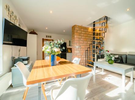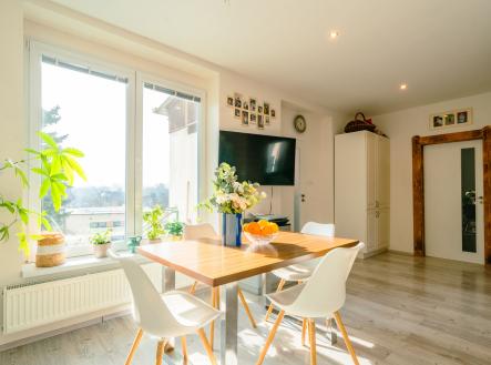 Hledáte útulné bydlení v blízkosti Prahy, které bude poskytovat klidné zázemí pro Vaši rodinu? Nabízíme Vám ke koupi rodinný dům 4kk s terasou, zahradou a krásným výhledem do okolí v obci Máslovice, okr. Praha východ. Dům má velmi praktické dispozice o celkové ploše kolem 100 m2 a pozemkem 395 m2. V přízemí domu je obývací prostor s jídelnou, který je propojený s kuchyňským koutem. Ten je vybaven kuchyňskou linkou se spotřebiči (varná deska, trouba, myčka nádobí, mikrovlnná trouba). Dále je zde ložnice, koupelna s vanou a toaletou, vstupní chodba. V podkroví domu jsou dva samostatné pokoje. Dům prošel v nedávné době vnitřní rekonstrukcí, během které bylo vybudované nové plynové topení (kotel Buderus), nové rozvody elektřiny, vody, podlahové krytiny, okna, dveře, obytné místnosti v podkroví domu, izolace střechy foukaným polystyrenem, nový septik. Před domem je k dispozici terasa, mírně svažitá zahrada a dva velmi prostorné sklepy s rozlohou cca 50 m2 a především prostor na vybudování parkovacího místa. Dům nyní není zateplený, bez nové fasády, energetický štítek se nyní připravuje, uvedena je tedy hodnota G. V tuto chvíli je dům připojen na elektřinu, zaveden plyn, vodovod, kanalizace v přípravě, septik. Obec Máslovice se nachází pouhých 7 km severně od okraje Prahy a je součástí přírodního parku Dolní Povltaví, což skýtá možnost využití krásného přírodního bohatství a klidného bydlení. Pokud zmiňujeme obec Máslovice, tak musí zaznít, že je zde velmi oblíbené pekařství a nově vznikající bistro. Kompletní zázemí a občanská vybavenost je v blízké obci Klecany. Autobus jede přímý až k metru Kobylisy. Pro bližší informace mě kontaktujte a rádi vám umožníme osobní prohlídku domu.