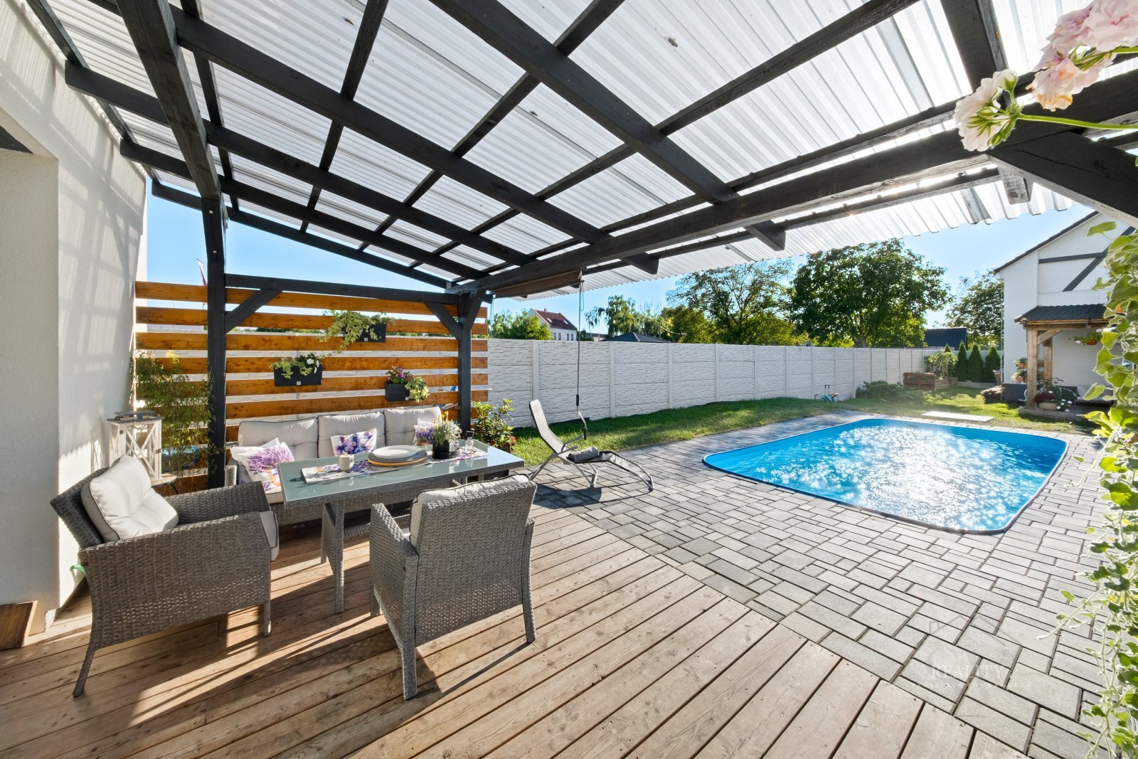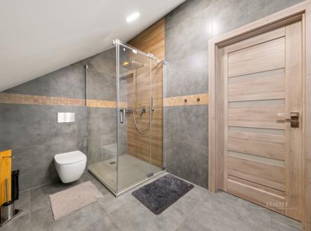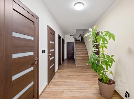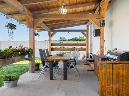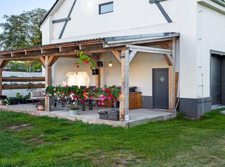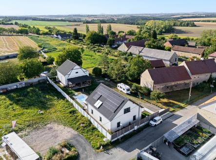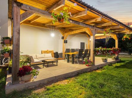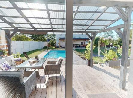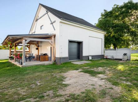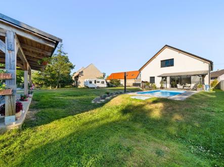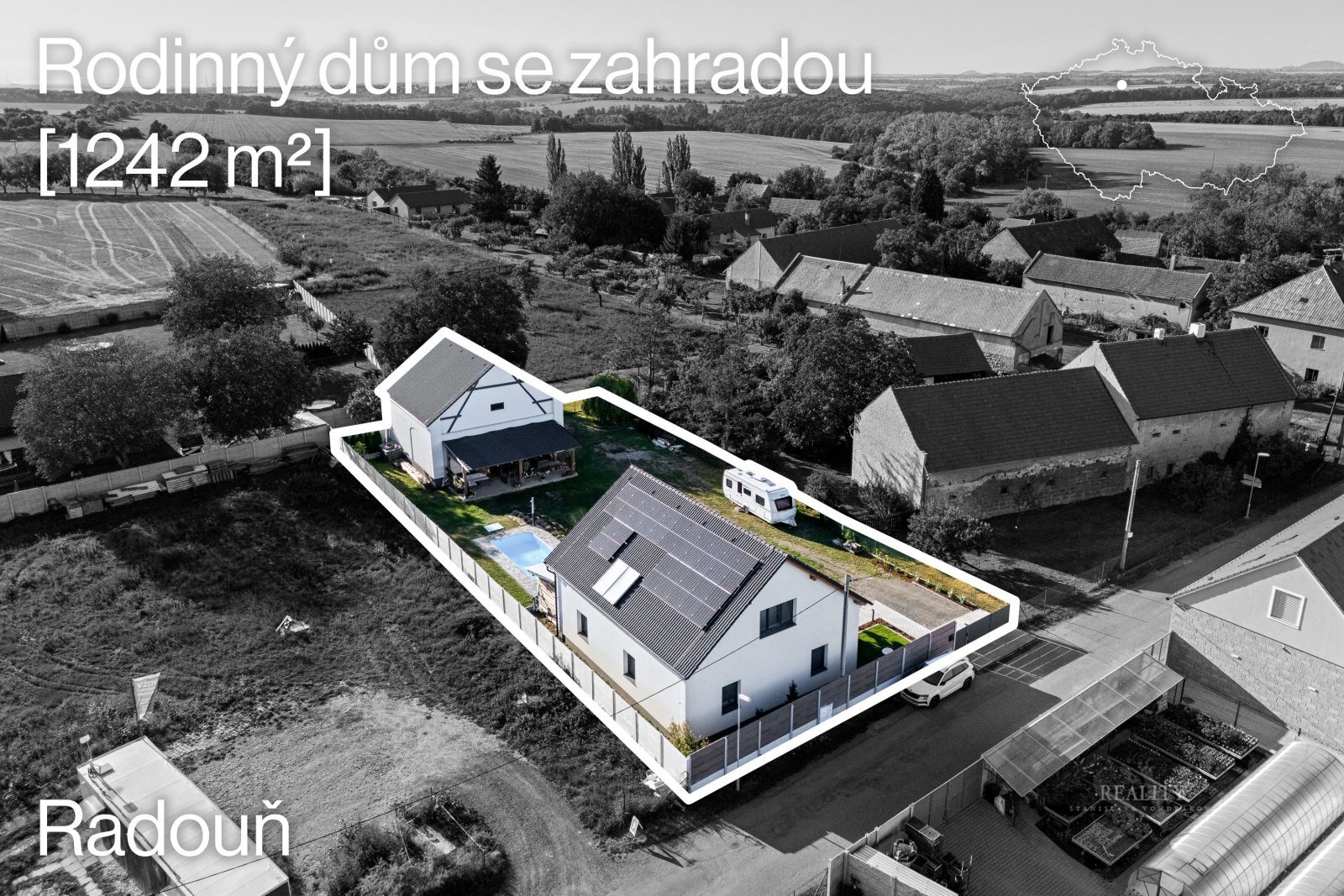Exkluzivně nabízíme k prodeji moderní novostavbu rodinného domu o dispozici 4+kk, postavenou v roce 2021. Tento dům splňuje všechny nároky na komfortní a současné bydlení. Nemovitost se nachází v klidné části obce Radouň (Mělnické Vtelno), což z ní činí ideální volbu pro rodiny hledající tiché prostředí s výbornou dostupností do Mělníka a okolí. Moderní provedení a praktické uspořádání Dům byl postaven s důrazem na kvalitu a moderní design, který se promítá do každého detailu. Dispozice 4+kk nabízí dostatek prostoru a pohodlí pro rodinný život. Přízemí domu tvoří: vstupní chodba a samostatné WC, prostorný obývací pokoj (44,64 m²) propojený s kuchyňským koutem a přímým vstupem na terasu a k bazénu, moderní kuchyň vybavená vestavěnými spotřebiči značky Electrolux (myčka, varná deska, komínová digestoř s podsvícením, el. trouba, mikrovlnná trouba, kávovar) a americkou lednicí, lesklá kuchyňská linka s velkou pracovní plochou a dřevěným pultem, ložnice se šatnou, pracovna, komora, koupelna se sprchovým koutem a mramorovými umyvadly,technická místnost s tepelným čerpadlem NIBE (voda–vzduch). V celém domě je kvalitní dlažba s podlahovým vytápěním a možností regulace, bezfalcové interiérové dveře s magnetickými zámky, dotykové vypínače, před okenní rolety a trojskla. První patro (89,85 m²) – flexibilní prostor pro bydlení i podnikání Do horního patra vede designové schodiště. Otevřený prostor je možné využít jako: další ložnici, ateliér, pracovnu nebo salon pro masáže, kosmetiku či jiné podnikání. Součástí je samostatná koupelna s WC. Velkou výhodou je možnost rozdělení prostoru na jednotlivé zóny a jeho přizpůsobení konkrétním potřebám. Technické parametry: zateplení: Ytong + tepelná izolace + stříkaná PUR pěna, okna: trojsklo, vytápění: podlahové (elektrické) + tepelné čerpadlo, fotovoltaika: 18 panelů + 2 kolektory pro ohřev vody, napojeno na vodovod, odpad řešen septikem, velmi nízké měsíční náklady: cca 3 000 Kč (voda 1 000 Kč, elektřina 2 000 Kč). Exteriér a další vybavení: krytá pergola s posezením (40 m²) – stavební povolení zajištěno, bazén 7 × 3 m, hloubka 1,5 m, garáž naproti domu (zastavěná plocha 110 m²) – možnost vestavby dalšího patra, ideální např. jako klubovna, pracovna nebo další obytný prostor, celý pozemek je oplocen betonovým plotem, který zajišťuje naprosté soukromí, rozlehlá zahrada s možností venkovního posezení. Ráda vás osobně provedu a ukážu všechny přednosti tohoto domu.