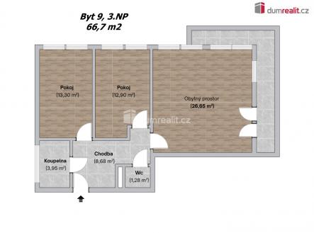 Byt 3+kk, 66 m2 s balkonem a parkovacím místem