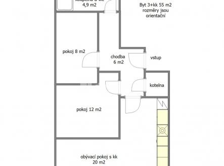 Možný pronájem bytu 3+kk. Byt se nachází v 3.NP zrekonstruovaného domu. Je přístupný výtahem z parkoviště vedle domu, kde je jedno parkovací místo pro tento byt. V roce 2027 bude dokončena rekonstrukce vedlejšího domu a byt bude přístupný po venkovním schodišti. Vytápění bytu a ohřev vody je řešeno elektrickým kotlem s podlahovým topením. Byt je vybaven kuchyňskou linkou s myčkou, el. troubou a sporákem s digestoří a klimatizací. Podlahové krytiny jsou vinyl a dlažba v koupelně a wc. Elektřina a voda je samostatně měřitelná, záloha na elektřinu činí 3000,- Kč, voda 2000,- Kč. Internet je připravený, jen je třeba si domluvit poskytovatele. Nájemné činí 23.000,- Kč. Kauce 40.000,- Kč. Pro bližší informace a termín prohlídky volejte makléře. Ev. číslo: 655226.