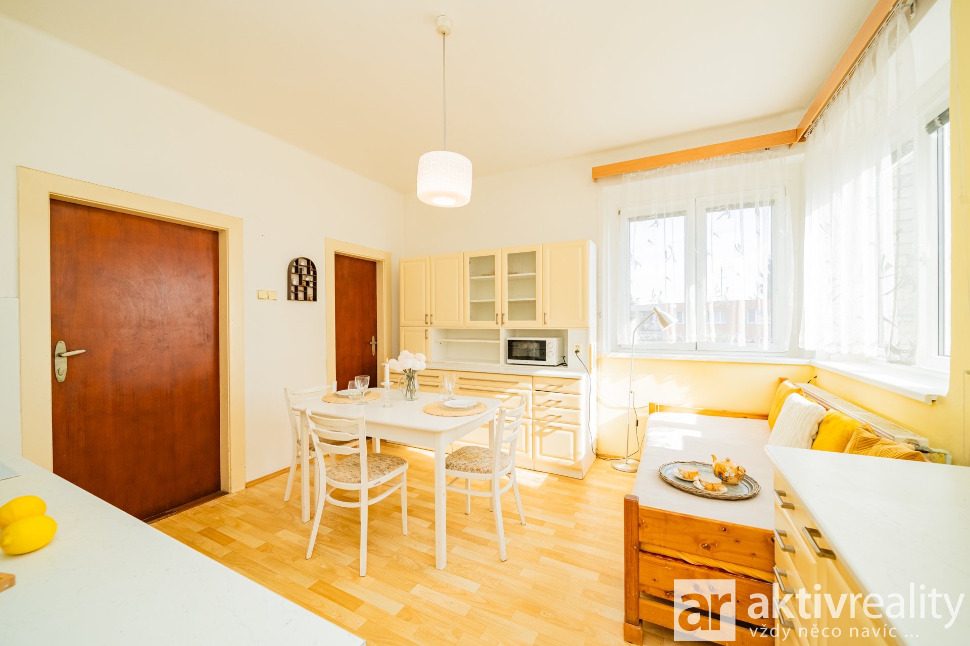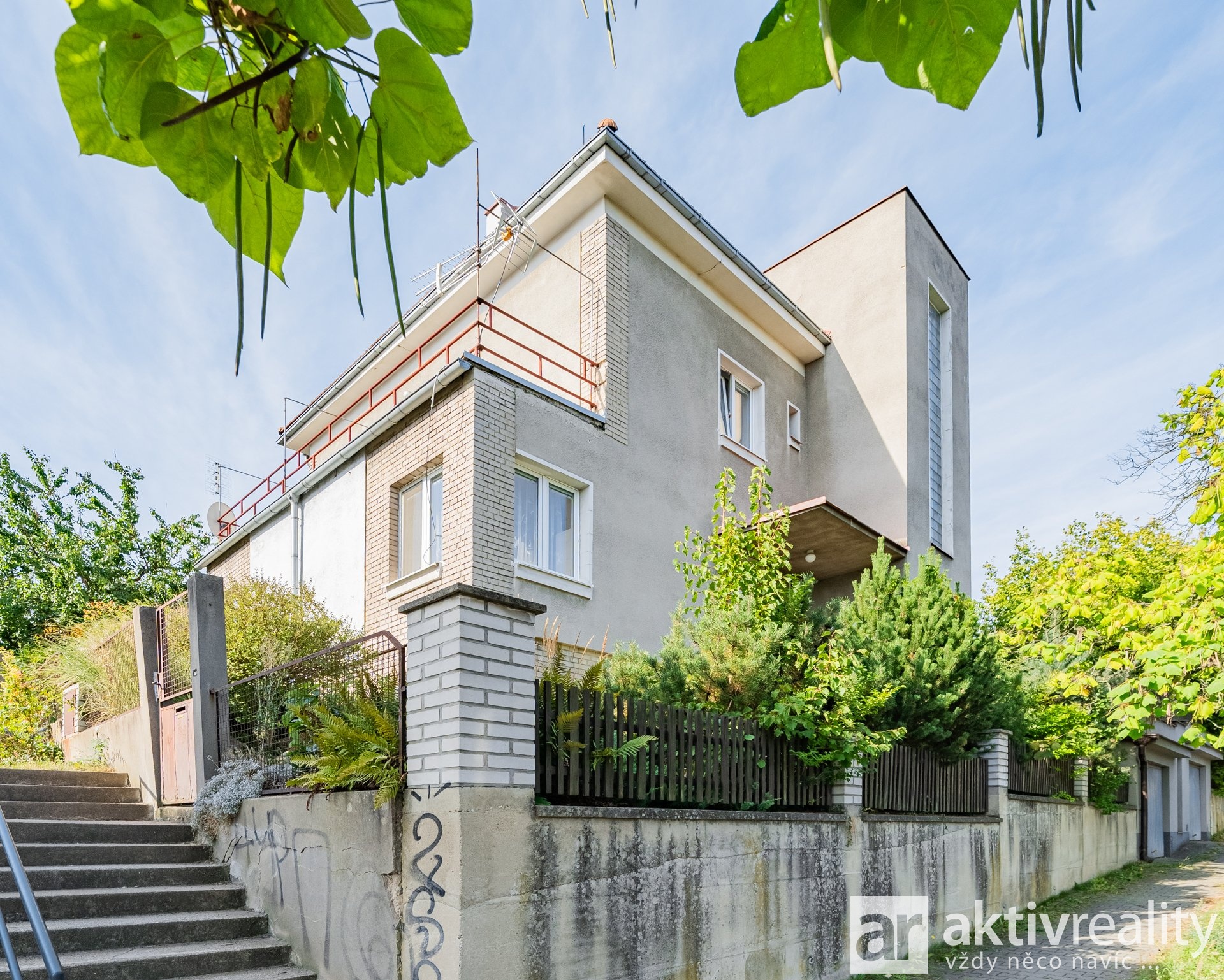 Prodej vily ve funkcionalistickém stylu z roku 1938 na Mělníku. Více fotografií a podrobné informace najdete na webu viz video. Jedná se o poctivou cihlovou stavbu s noblesou své doby a velkorysým prostorem pro rodinu i případné podnikání. Dvě obytná podlaží doplňuje suterén a půda s možností vestavby dalšího pokoje. Součástí jsou dvě garáže s vjezdem z ulice a terasou nad nimi. Zahrada má přes 400 m², je obklopená vzrostlou zelení a poskytuje příjemné soukromí. Dispozice je přehledná. Ve zvýšeném přízemí je prostorný obývací pokoj, kuchyně, další pokoj, koupelna s vanou a místem pro pračku, samostatná toaleta a komora. V patře je obdobné uspořádání, jen menší o plochu terasy: dva pokoje, kuchyně, toaleta a komora. Na terasu se vstupuje z jednoho z pokojů, nabízí hezký výhled a dává smysl i jako místo pro budoucí zimní zahradu. V suterénu je technické zázemí a úložné prostory. Stav domu odpovídá kvalitnímu provedení. Okna jsou plastová. Vytápění zajišťuje plynový kotel, rozvody topení a radiátory jsou novější a v mědi. Střecha byla kompletně opravena a je v dobré kondici. Počítat lze s modernizací vnitřních instalací (voda, odpady, elektro) a s úpravami interiéru podle představ. Dominantou vily je světlé schodiště v luxferové věži, které propojuje všechna podlaží a podtrhuje charakter domu. Poloha ve širším centru znamená služby, školy, parky i veřejnou dopravu pohodlně v docházce. Více fotografií a podrobné informace najdete na webu viz video.