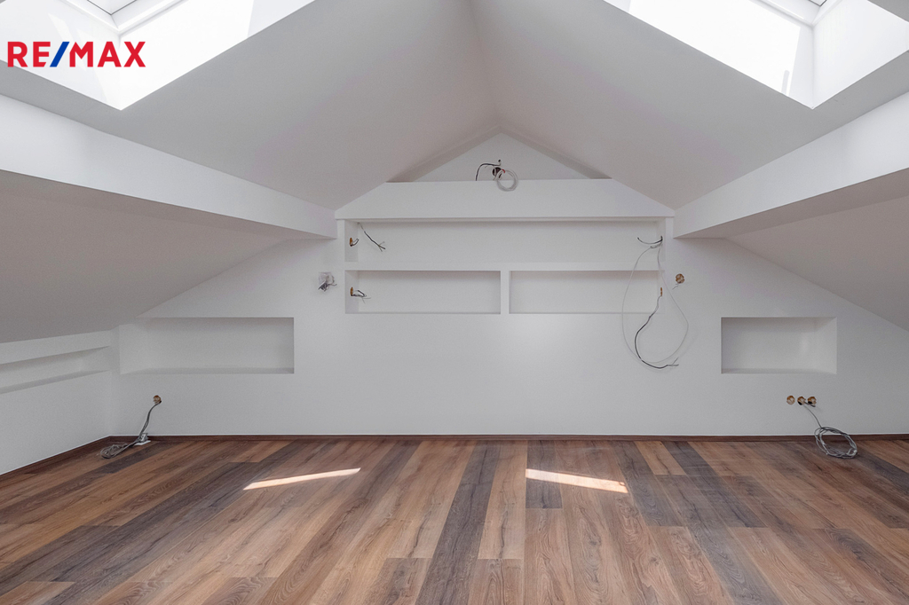 Představujeme vám kompletně zrekonstruovaný rodinný dům v klidné lokalitě Perunov v Mělníku, který splní veškeré požadavky na pohodlné a nadstandardní bydlení. K domu je možnost pronajmout od města Mělník na dobu neurčitou 151 m2 zahrady přímo naproti domu za pouhých 453Kč/rok. Momentálně je smlouva na majitelku domu a přepis zahrady na nového majitele není problém. Dům je kompletně podsklepený, kde se nachází technické zázemí domu. V přízemí je zádveří, prostorná kuchyně s obývacím pokojem a toaleta. Do prvního patra vedou dřevěné schody, kde je koupelna se sprchovým koutem a toaletou a dva pokoje. Z jednoho z pokojů vedou schody do dalšího podkrovního pokoje. Dům je navržen s důrazem na praktičnost a komfort. Čekají na vás 2 prostorné pokoje a obytné podkroví, jedna koupelna s toaletou v patře a samostatná toaleta v doplním patře. V přízemí je nová plně vybavená kuchyně s vestavěnými spotřebiči (trouba, deska, mikrovlná trouba, myčka a lednice). V kuchyni je také ostrůvek, který navazuje na obývací pokoj, z něj vede velké francouzské okno na menší terasu. K domu také náleží garáž o výměře 16 m2 pár kroků od domu. K domu nenáleží žádný pozemek kromě toho na kterém dům stojí. Dům je krásně prosvětlený a je v něm dostatek přirozeného světla. V domě jsou kompletně nové okna a veškeré rozvody (voda, teplo, elekřina). Dům je zateplený a s fasádou. Bojler na vodu je 120l. Lokalita zajišťuje výbornou dostupnost do centra Mělníka, v okolí se nachází les, cyklostezky i kompletní občanská vybavenost. Na dálnici do Prahy jste za 15 minut od domu. Dům bude ideálním místem pro mladou rodinu, která chce žít v klidné a rodinné zástavbě. Pokud vás dům zaujal a chcete se o něm dozvědět více, neváhejte nás kontaktovat.