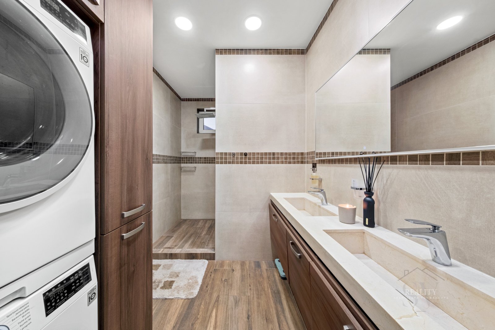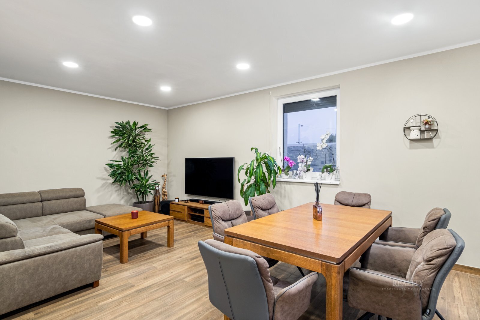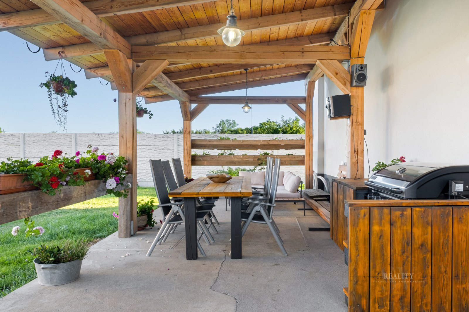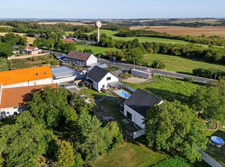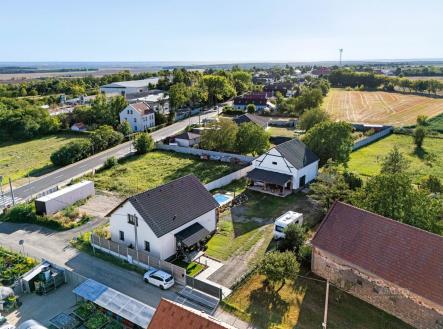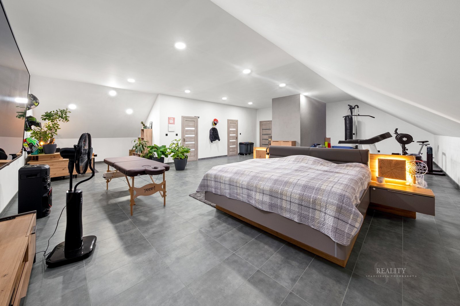 Exkluzivně nabízíme k prodeji moderní novostavbu rodinného domu o dispozici 4+kk, postavenou v roce 2021. Tento dům splňuje všechny nároky na komfortní a současné bydlení. Nemovitost se nachází v klidné části obce Radouň (Mělnické Vtelno), což z ní činí ideální volbu pro rodiny hledající tiché prostředí s výbornou dostupností do Mělníka a okolí. Moderní provedení a praktické uspořádání Dům byl postaven s důrazem na kvalitu a moderní design, který se promítá do každého detailu. Dispozice 4+kk nabízí dostatek prostoru a pohodlí pro rodinný život. Přízemí domu tvoří: vstupní chodba a samostatné WC, prostorný obývací pokoj (44,64 m²) propojený s kuchyňským koutem a přímým vstupem na terasu a k bazénu, moderní kuchyň vybavená vestavěnými spotřebiči značky Electrolux (myčka, varná deska, komínová digestoř s podsvícením, el. trouba, mikrovlnná trouba, kávovar) a americkou lednicí, lesklá kuchyňská linka s velkou pracovní plochou a dřevěným pultem, ložnice se šatnou, pracovna, komora, koupelna se sprchovým koutem a mramorovými umyvadly,technická místnost s tepelným čerpadlem NIBE (voda–vzduch). V celém domě je kvalitní dlažba s podlahovým vytápěním a možností regulace, bezfalcové interiérové dveře s magnetickými zámky, dotykové vypínače, před okenní rolety a trojskla. První patro (89,85 m²) – flexibilní prostor pro bydlení i podnikání Do horního patra vede designové schodiště. Otevřený prostor je možné využít jako: další ložnici, ateliér, pracovnu nebo salon pro masáže, kosmetiku či jiné podnikání. Součástí je samostatná koupelna s WC. Velkou výhodou je možnost rozdělení prostoru na jednotlivé zóny a jeho přizpůsobení konkrétním potřebám. Technické parametry: zateplení: Ytong + tepelná izolace + stříkaná PUR pěna, okna: trojsklo, vytápění: podlahové (elektrické) + tepelné čerpadlo, fotovoltaika: 18 panelů + 2 kolektory pro ohřev vody, napojeno na vodovod, odpad řešen septikem, velmi nízké měsíční náklady: cca 3 000 Kč (voda 1 000 Kč, elektřina 2 000 Kč). Exteriér a další vybavení: krytá pergola s posezením (40 m²) – stavební povolení zajištěno, bazén 7 × 3 m, hloubka 1,5 m, garáž naproti domu (zastavěná plocha 110 m²) – možnost vestavby dalšího patra, ideální např. jako klubovna, pracovna nebo další obytný prostor, celý pozemek je oplocen betonovým plotem, který zajišťuje naprosté soukromí, rozlehlá zahrada s možností venkovního posezení. Ráda vás osobně provedu a ukážu všechny přednosti tohoto domu.