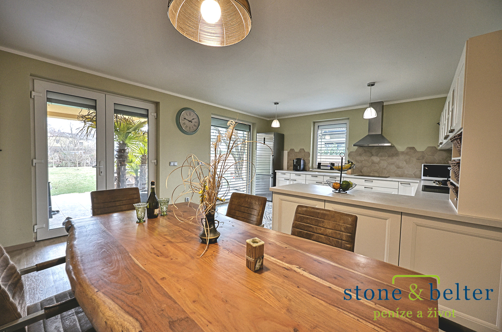 Nabízíme k prodeji prostorný dvoupatrový rodinný dům postavený rakouskou technologií Durisol s výbornými tepelně-izolačními vlastnostmi s celkovou užitnou plochou 267 m², situovaný na rovinatém pozemku o velikosti 1 267 m² v klidné a vyhledávané obci Měšice, okres Praha - východ. Součástí pozemku je pečlivě udržovaná zahrada o výměře 835 m², která nabízí dostatek prostoru pro odpočinek, rodinné aktivity i zahradničení. Krajní částí pozemku protéká Líbeznický potok, jež je bez přítoků, a proto nehrozí riziko záplav. Orientace na jihovýchod zajišťuje dostatek denního světla po celý den. V přízemí se nachází vstupní zádveří se šatnou, chodba, samostatný pokoj využitelný jako ložnice nebo pracovna a dále hlavní obytná část domu – prostorný obývací pokoj plynule propojený s jídelnou a kuchyní vybavenou spotřebiči značky Gorenje. Je zde i koupelna s WC a technická místnost. Po schodišti se vystoupá do druhého podlaží, kde jsou tři neprůchozí pokoje – ložnice s navazující samostatnou šatnou, dětský pokoj a pracovna. Dále je zde prostorná a světlá koupelna s vanou a WC. V horním patře se je druhá technická místnost s kotlem, bojlerem, automatickou pračkou a pro chvíle odpočinku i infrakabinou. Dům působí velmi světle a vzdušně, obytné místnosti jsou orientovány na jihovýchod, okna jsou vybavena elektrickými venkovními žaluziemi. Datové rozvody jsou vyvedeny do každého pokoje, což zajišťuje kvalitní připojení i pro práci z domova Průchozí garáž nabízí dostatečný prostor pro dvě osobní auta, sportovní vybavení (motocykl, kola) a praktickou dílnu. Přirozeným propojením domu se zahradou je velká zastřešená terasa, ideální pro rodinné posezení či odpočinek. Vodní hospodářství je řešeno studnou na pozemku, podzemní nádrží na dešťovou vodu o objemu 5 m³ a ekologickou čističkou odpadních vod, připraven na připojení k obecnímu vodovodu a odpadu. O tepelný komfort se stará elektrický kotel Bosch, přičemž v celém domě je instalováno podlahové vytápění. Ve druhém podlaží jej doplňují šamotové akumulační radiátory, které efektivně udržují teplo i během chladnějších dnů. Atmosféru domova doplňují stylová krbová kamna v hlavní obytné části. Dům je navržen s důrazem na energetickou soběstačnost. Střešní fotovoltaická elektrárna s 26 panely a bateriovým úložištěm zajišťuje vlastní zdroj elektřiny, který je připraven i na přepnutí na alternativní napájení pomocí elektrocentrály. Elektrická přípojka 240 i 380 V. Garáž je navíc vybavena wallboxem pro pohodlné dobíjení elektromobilu. Lokalita domu nabízí ideální kombinaci venkovského klidu a výborné dostupnosti do Prahy – autem jste v hlavním městě za 15 minut, využít můžete také příměstský autobus nebo vlak. Proč právě tento dům? – Energetická soběstačnost: vlastní elektřina, voda, čistička – Prostorný a technicky nadstandardně vybavený dům – Velká udržovaná zahrada s maximálním soukromím – Výborná dostupnost do Prahy – Ideální kombinace moderního bydlení, přírody a komfortu video nemovitosti: https://youtu.be/kikdsHDARy4