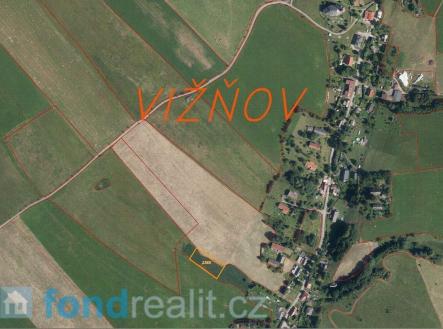 Předmětem dražby je pozemek o výměře 2 273 m2 v obci Vižňov. Pozemek se nachází nedaleko zástavby jihozápadně od intravilánu obce. V katastru nemovitostí je veden jako vodní plocha. Vzhledem ke svému charakteru je vhodný pro vybudování rybníka či tůně. Vižňov je vesnice v okrese Náchod, jedna ze šesti částí města Meziměstí. Nachází se 2 km severně od tohoto města na úpatí Javořích hor. Oblast leží v Broumovském výběžku, téměř ze všech stran ji obklopují hory a lesy Krkonoš, Orlických hor a Javoří hory s Broumovskými stěnami. Název katastrálního území je Vižňov. V případě zájmu nás neváhejte kontaktovat. Dne 22.1.2026 bude pozemek prodáván formou exekutorské dražby. Je vhodné, aby se dražitelé dojeli osobně na pozemek podívat a řádně se s ním seznámili.