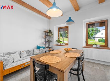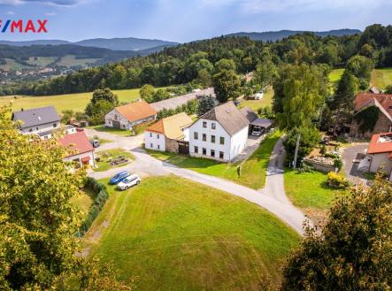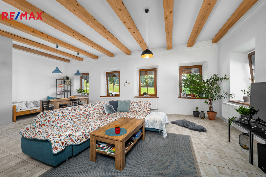 Ve výhradním zastoupení majitele nabízíme k prodeji jedinečnou nemovitost v malebné vesnici Klenovice, která poskytuje výbornou kombinaci klidného trvalého bydlení, relaxační rekreace, případně podnikatelských možností. Klenovice jsou malá vesnice, část obce Mičovice v okrese Prachatice. Vesnice horského typu pravidelného tvaru s velikou návsí, kterou obklopuje cca 25 domů. Jak je typické pro oblast východní části Šumavy, jedná se o velké patrové domy, jež jsou doplněny menšími přízemními domy. V současné době už jsou téměř všechny nemovitosti krásně opraveny, rovněž náves prošla citlivými úpravami, vesnice tak působí velmi příjemným dojmem. Prodávaná nemovitost se nachází na rohu návsi na opačné straně, než je příjezd do vsi. Tvoří ji velká stavba s navazující zahradou a přilehlým pozemkem, celková velikost pozemku činí 1.112 m2. Dispozičně nemovitost nabízí 4+2, 3x koupelna. Podlahová plocha nemovitosti je 226 m2, rozděleno na 1.NP a 2.NP 1.NP 112 m2: vstup/předsíň, chodba, kuchyně, velký obývací pokoj, koupelna s WC, prádelna vč. technické místnosti, kotelna + sklad paliva. 2. NP 114 m2: 2x velký pokoj, koupelna (vana, sprchový kout, umyvadlo, WC) + apartmán s vlastní koupelnou a samostatným vchodem schodištěm z venku. Nemovitost je částečně podsklepena, 25 m2. Součástí nemovitosti je zastřešené sezení s dalším možným využitím, užitná plocha 39 m2. Navazující zahrada o rozloze 443 m2. Další pozemek u nemovitosti o výměře 457 m2 je za výhodných podmínek pronajat od státního pozemkového úřadu s předkupním právem. Za zmínku stojí půdní prostor o výměře cca 80 m2. Prostor je prosvětlen okny a nabízí další možnosti individuálního využití. Vytápění je řešeno kotlem na pevná paliva se zásobníkem, nebo elektrokotlem – obojí s rozvodem do radiátorů. Voda a kanalizace obecní. V roce 2017 prošla nemovitost kompletní rekonstrukcí interiéru: rozvody vody, odpadu, elektroinstalace, podlahy, omítky, koupelny atd. Díky flexibilitě prostoru a jeho multifunkčnímu využití je tato nemovitost ideální pro ty, kteří hledají kombinaci soukromého bydlení, odpočinku a možnosti podnikání. Okolní příroda a malebné scenérie poskytují ideální prostředí pro trvalé bydlení, kde můžete relaxovat a užívat si klidu, nebo pro rekreaci s rodinou a přáteli. V případě zájmu, kontaktujte makléře nabídky. Rádi vás uvítáme na prohlídce.