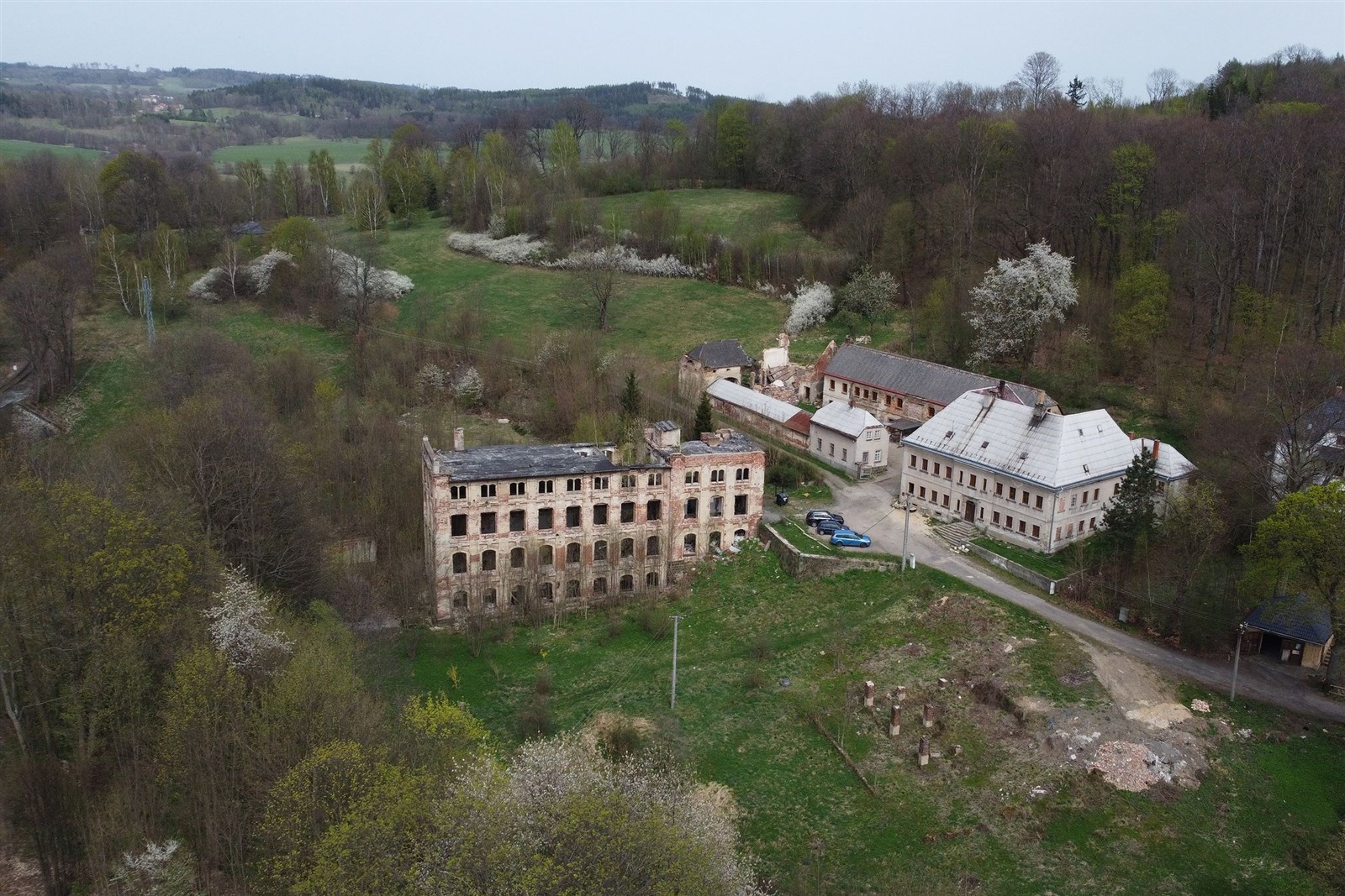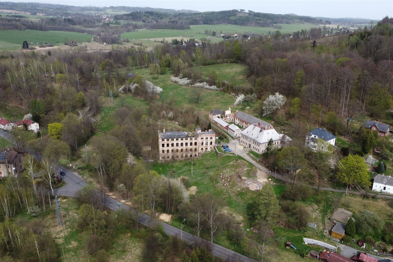 Nabízíme k prodeji objekt bývalé továrny, který tvoří bytový dům s pěti bytovými jednotkami o podlahové ploše celkem 538 m2, a k němu náležející vedlejší stavby a pozemky o celkové rozloze 8519 m2. Hlavní budova, tzv. Röslerův zámeček, byla postavena v letech 1817 až 1818 místním podnikatelem nožířem Ignazem Röslerem, přístavba pochází cca z roku 1920. Dále se v areálu nachází vedlejší budova dříve výroba a sklady, a již částečně zbořená budova továrny. Menší domek uvnitř objektu patří jinému majiteli a není součástí prodeje. V budově bývalého zámečku se nachází celkem 5 bytů : * byt 1 podlahová plocha 137 m2, 4 + 1, elektrokotel a zároveň ohřev vody, možnost přepnout na kamna s výměníkem * byt 2 podlahová plocha 116 m2, 4 + 1, elektrokotel a zároveň ohřev vody, možnost přepnout na kamna s výměníkem * byt 3 podlahová plocha je cca 160 m2, 6 + 1, elektrokotel s ohřevem vody * byt 4 podlahová plocha 83 m2, 3 + 1, elektrické přímotopy, jedna kamna bez výměníku, bojler * byt 5 podlahová plocha 42 m2, 1 + 1, kamna bez výměníku, bojler Všechny byty mají nové elektroinstalace a rozvody vody, podlahy i omítky, nicméně některé již vykazují silné opotřebení. Okna v celém bytovém domě jsou kvalitní plastová. Byty jsou všechny obsazené, fotografie jsou některé upravené tím, že jsme odebrali nábytek pro lepší představu. Aktuální výnos z nájmu Vám ráda sdělím telefonicky. Střecha a krovy jsou původní, ale ve velmi dobrém stavu půda je obrovský patrový prostor s možností dalšího využití. Budova je podsklepená, ale sklepy využívány nejsou. Vedlejší navazující budova má patro připravené na přestavbu: jsou osazena plastová okna a připravené odpady, rozvody vody a dole nová elektrická skříň, v současné době je využívána jen občasně. Pozemky jsou průběžně udržovány, ale nevyužívány. Příjezd k objektu vede po obecní zpevněné komunikaci, na kterou se sjíždí z hlavní silnice, procházející obcí. Jedná se o velmi specifickou nabídku, ke které Vás bude zajímat spousta informací, které Vám ráda podám a sjednám i prohlídku nemovitosti. Mikulášovice se nachází v krásné kopcovité krajině příhraniční oblasti, kousek od města Sebnitz a Hřenska, která sama o sobě stojí za návštěvu. Věříme, že celý objekt najde někoho, kdo na základě svého záměru plně rozvine jeho potenciál.