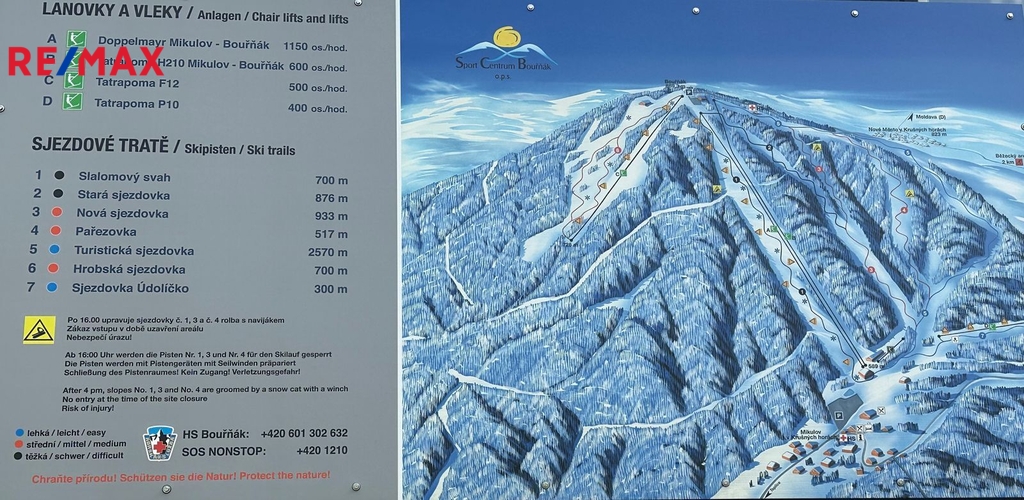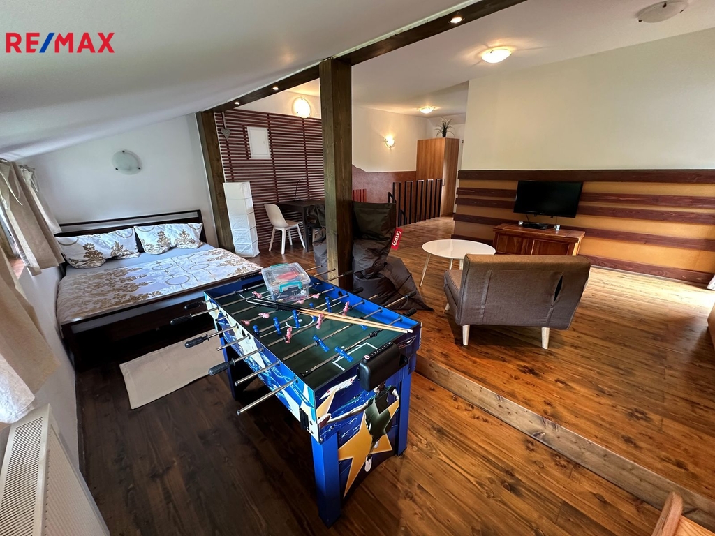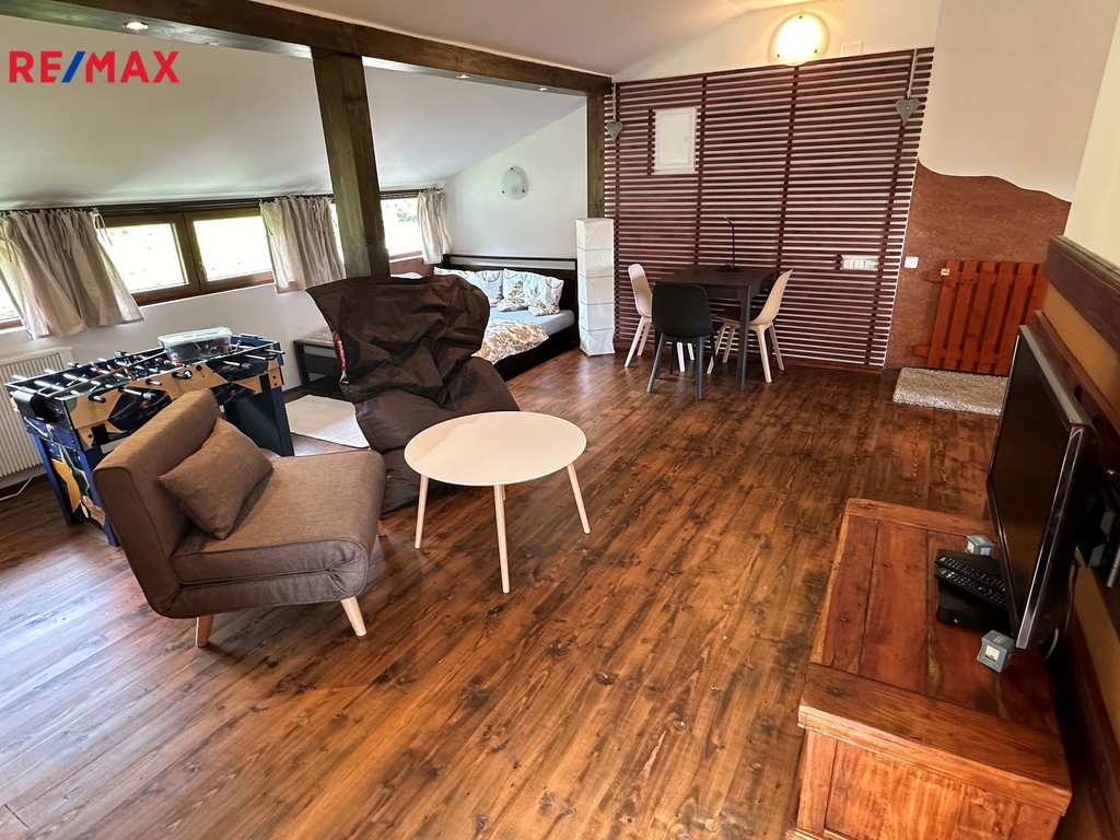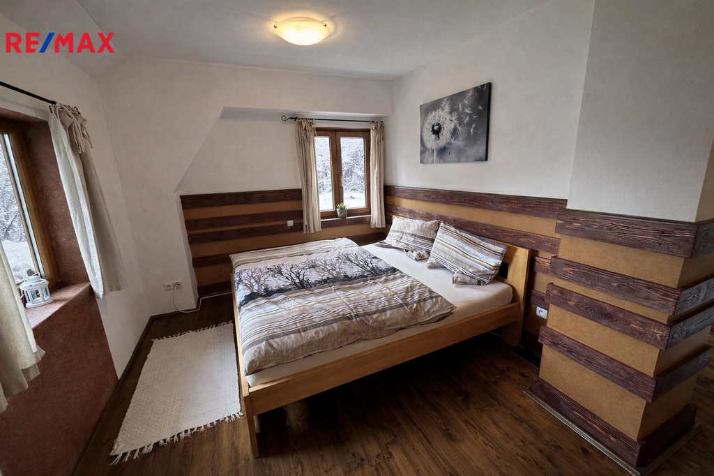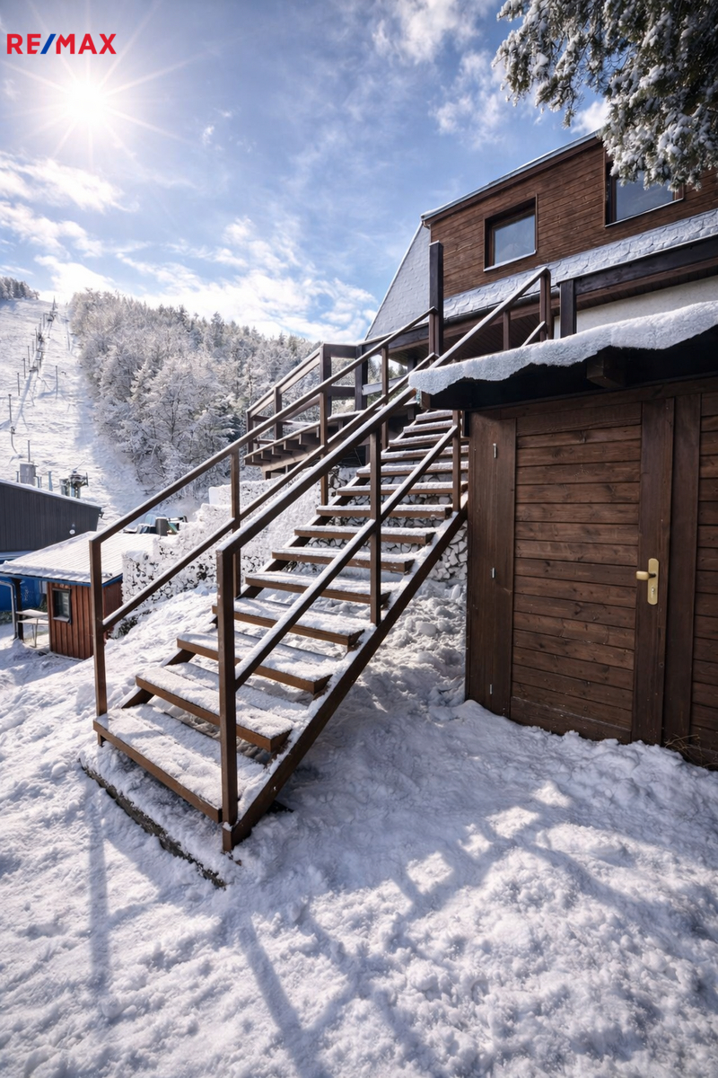 Nabízíme k prodeji moderně řešenou chalupu v atraktivní alpské architektuře, situovanou přímo naproti sjezdovce Slalomák, která je součástí skiareálu Bouřňák – vyhledávaného lyžaři, skialpinisty, ale i milovníky cyklistiky, turistiky a nordic walkingu. Hlavní přednosti nemovitosti: - Dispozice 3+KK s obytnou galerií v patře - Užitná plocha 150 m² (42 m² přízemí + 42 m² patro + 58 m² terasa + 3 m² balkón + 4 m² kolna + 1 m² sklep) - Pozemek 278 m² - Prostorná terasa a zastřešený balkón s výhledem na skiareál, rybník a celou obec - Kvalitní provedení: zděné přízemí + zateplená dřevostavba v patře, dřevěné dveře, plastová okna s dekorem dřeva a žaluziemi - Napojení na obecní vodovod, kanalizaci i elektřinu → možnost snadné rekolaudace k trvalému bydlení - Vytápění: úsporné akumulační přímotopy s dálkovým ovládáním + stylový krb s průduchy do patra - Ohřev vody: elektrický bojler - Po domluvě lze zanechat s kompletním zařízením a vybavením nebo jejich částí! Dispoziční řešení: Přízemí: • vstupní chodba s technickým zázemím • prostorný obývací pokoj s krbem a jídelním koutem • stylová kuchyňská linka na míru s vestavěnými elektro spotřebiči • koupelna s velkým zděným sprchovým koutem, umyvadlem a přípojkou na pračku • samostatná toaleta • terasa se zastřešeným posezením Patro: • galerie s pracovním koutkem a prostorem k odpočinku • 2 samostatné ložnice • zastřešený balkón Lokalita: Mikulov v Krušných horách – výborné sportovní i turistické vyžití přímo na dosah 20 min autem německý Altenberg: bazén, bobová dráha, ZOO, sjezdovky, kvalitní potraviny Výborná dostupnost: Teplice 15 min, Dubí 10 min, Hrob 5 km, dálnice D8 v dosahu V obci MHD, vyhlášené restaurace Hubert a Cepín. Parkování: Mimo zimní sezónu příjezd až k chalupě po obecní komunikaci V zimě parkování zdarma na centrálním parkovišti (cca 150 m od objektu) Nemovitost je ideální pro rodinnou rekreaci, díky napojení na sítě a kvalitnímu provedení nabízí i možnost trvalého bydlení, může být rovněž zajímavou investiční příležitostí (pronájem, Airbnb). Pro více informací či sjednání prohlídky kontaktujte makléřku nabídky.