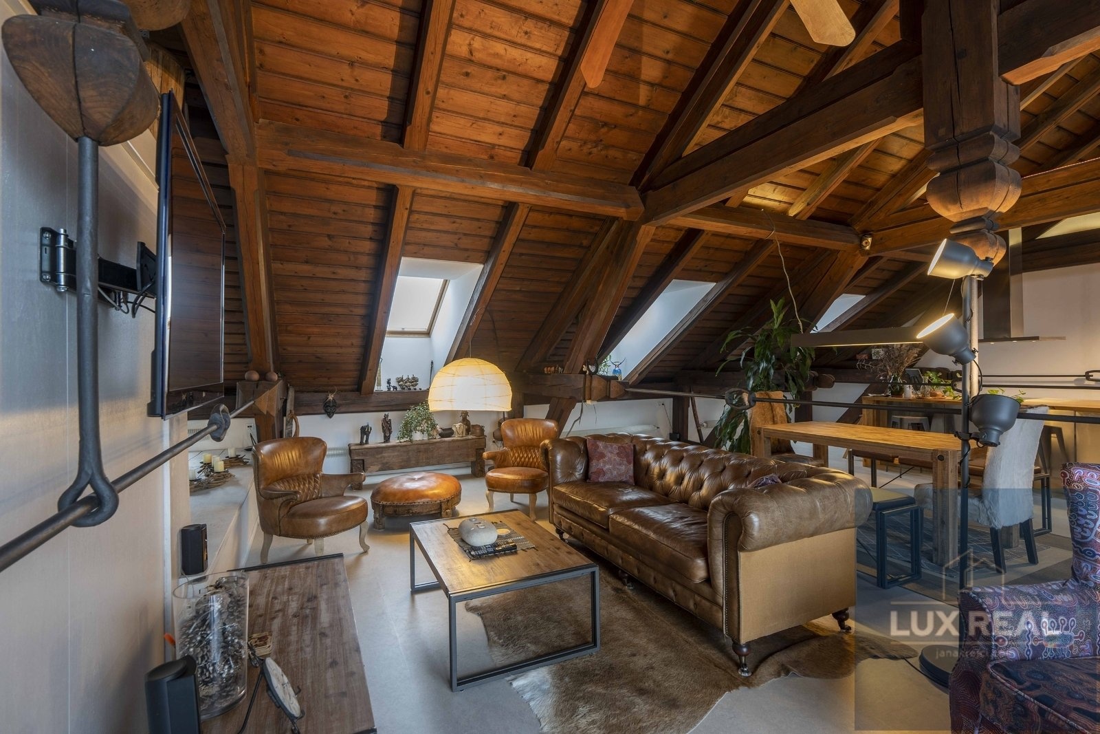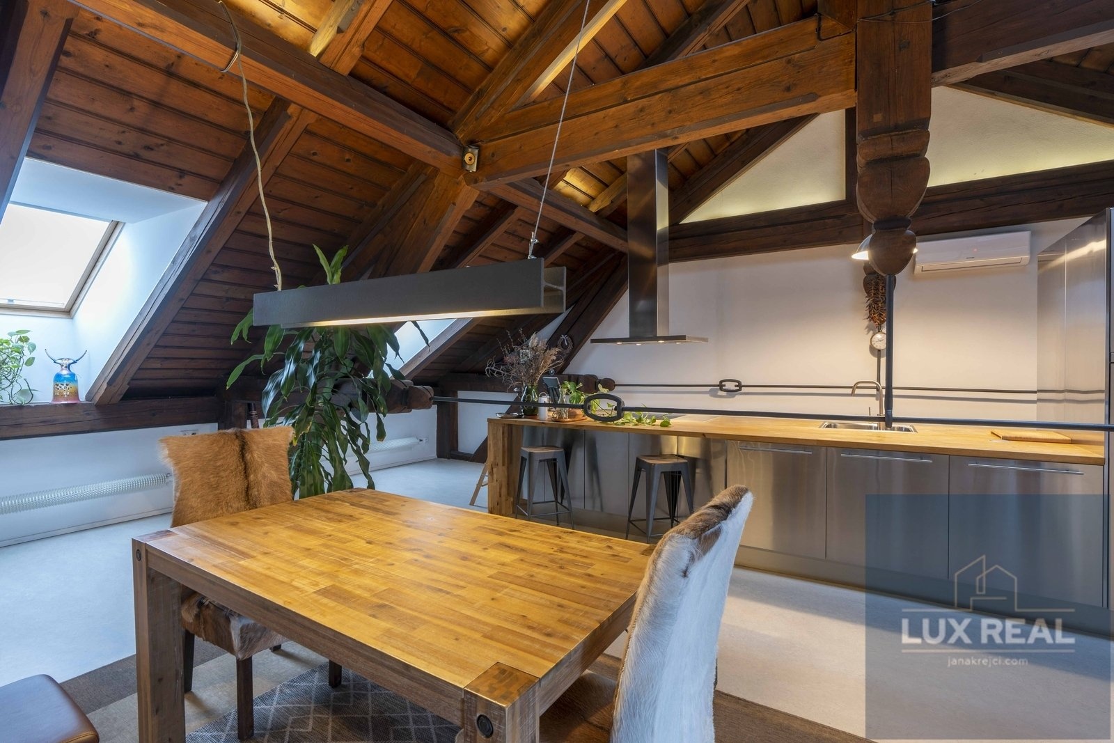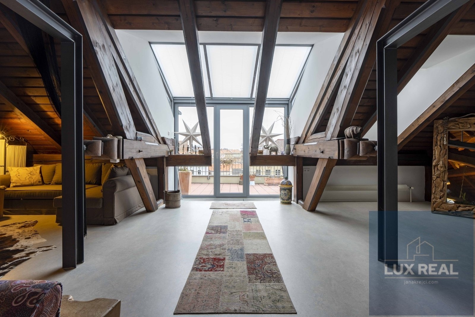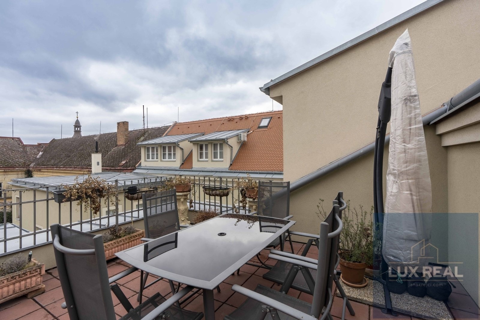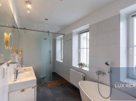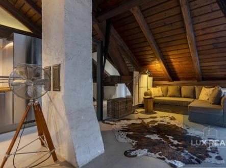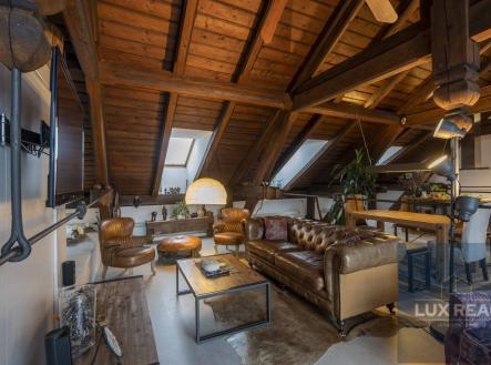 Dovoluji si Vám nabídnout k prodeji unikátní penthouse o celkové užitné ploše 200m2, nacházející se v žádané lokalitě - Mikulov. Tento moderní penthouse byl pečlivě upraven v rámci rezidenčního projektu v bývalé škole a díky tomu se můžete těšit na prvky industriálního stylu, které dodávají interiéru originální charakter. Dispozice: Vstupní chodba s vestavěnými skříněmi, které zároveň slouží i jako dveře oddělující chodbu od koupelny (sprchový kout, samostatně stojící vana, a oddělená toaleta), ale i od obytného otevřeného prostoru. Z této vstupní chodby se dostane také přímo na terasu. Penthouse má zvýšené stropy , které vytvářejí vzdušný a unikátní prostor, ale zároveň je možné tento prostor dle potřeb rozdělit i na více místností. Ve velkém otevřeném prostoru je umístěna kuchyně a obývací pokoj s prosvětlenými střešními okny a vstupem na terasu s krásnými výhledy. Členitost tohoto otevřeného prostoru vytvářejí příjemnou atmosféru a propůjčují mu jas a vzdušnost. Kuchyň je vybavena moderními spotřebiči a splňuje všechny požadavky na funkčnost a komfort při vaření. Po schodech se dostanete na vyvýšený spací kout. V tomto prostoru máte i skříněmi oddělený prostor, kde je koutek sloužící jako pracovna. Penthouse se nachází jako jediný v třetím patře budovy, čímž nabízí krásný výhled na město. Jeho výraznou součástí je také střešní terasa o rozměrech 36m2, která je ideálním místem pro odpočinek, posezení s přáteli nebo třeba večerní grilování. Umožňuje krásné výhledy na zámek i Svatý kopeček. Parkování před domem. Nemovitost je v perfektním stavu, připravena k okamžitému nastěhování. Kupní cena nezahrnuje provizi RK. Vinařské město Mikulov je oblíbenou lokalitou díky své výhodné poloze v centru města, ale zároveň v klidném prostředí s dostupností veškeré občanské vybavenosti. Nenechejte si ujít tuto jedinečnou příležitost vlastnit nemovitost s autentickým kouzlem. Pro více informací a prohlídku neváhejte kontaktovat makléře.
