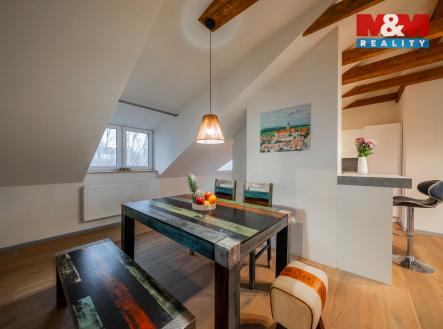Nabízíme vám jedinečnou bytovou jednotku 3+kk v atraktivní části Mikulova, na ulici Žižkova. Nová nadstavba bytového domu vznikla s použitím nadstandardních materiálů a s důrazem na vzdušnost a komfort. Celková plocha přes 140 m² nabízí velkorysý prostor pro pohodlné bydlení. Dominantou bytu je prostorný obývací pokoj s kuchyňským koutem, přiznanými trámy a jedinečnou atmosférou. K bytu náleží zimní zahrada s přívodem vody i elektřiny, ideální pro relaxaci nebo vytvoření vlastního wellness. Velkou výhodou je také prostorná šatna s oknem, kterou lze jednoduše využít jako další pokoj – byt tak může komfortně sloužit i jako 4+kk. Nemovitost je vhodná jak pro vlastní bydlení, tak i jako investice či stylové víkendové útočiště v jednom z nejvyhledávanějších míst Jižní Moravy. Mikulov nabízí klid, krásné výhledy a výjimečnou atmosféru. Pro více informací a domluvení prohlídky mě neváhejte kontaktovat.