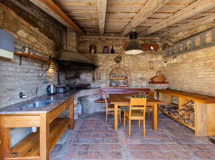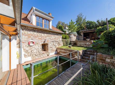 Představujeme Vám k prodeji jedinečnou nemovitost s bohatou historií, soukromím, moderním komfortem a vinicí v srdci malebného Mikulova. V domě najdete klid pro rodinu i své hosty. Při vstupu do nemovitosti vás uvítá prostorná hala s originálním kovovým schodištěm. Hala ústí do zahrady a nabízí výhled na zeleň a vodní plochu přes prosklenou stěnu. Na zahradě najdete zastřešené posezení s krbem, ideální pro čas strávený s rodinou a přáteli a samočistící bazén, nabízející dokonalou oázu klidu a relaxace. Spodní část domu je v současné chvíli prostorem nejen pro uměleckou tvorbu, umístěno je zde i odhlučněné nahrávací studio a zkušebna současného majitele, Davida Kollera. Ze zkušebny, vybavené projektorem i plátnem, která může novému majiteli sloužit jako obývací pokoj nebo kuchyň s jídelnou (inž. sítě jsou připraveny), je přímý vstup do chodby s dřevěnou saunou a stylovou koupelnou v designu navazujícího sklípku. Nejen milovníci vína ocení v této části domu prostorný sklep s nastavitelným chlazením, který je vhodný pro uskladnění ovoce, zeleniny nebo právě vína. Mezi saunou a sklípkem je v současnosti technická místnost, jejíž další využití je zcela v gesci nového majitele. Ve druhém patře domu jsou tři vzdušné prostorné pokoje s vysokými stropy, lanovými sítěmi, kde můžete relaxovat a s horním prostorem vhodným k dalšímu využití, ať již jako úložný prostor či další lůžkový prostor. Ložnice má vlastní balkon s podlahou z Massaranduby a nabízí výhled do ulice a na celý Mikulov. Každý pokoj má vlastní koupelnu. Jeden z pokojů navíc disponuje i dětskou lezeckou stěnou a velkým horním prostorem se dvěma lůžky. Pokoje jsou spojeny chodbou, která ústí v plně vybavenou kuchyni s jídelním stolem a italskými kamny. Kuchyň je zároveň vstupem na terasu navazující na venkovní posezení letní kuchyně, odkud je nádherný výhled na okolí. Za domem, v další úrovni pozemku nad letní kuchyní, se nachází dřevostavba s koupelnou a kuchyňkou, hned vedle něj je umístěna i venkovní vířivka. Výjimečný výhled na dominantní zámek Mikulov a do vlastní vinice na druhé straně, dodává celému místu nezaměnitelnou atmosféru. V horní části pozemku je zahrada s vlastní studnou i zavlažovacím systémem, zahradním domkem pro umístění nářadí, vzrostlými stromy a vinicí, dodávající nemovitosti autentický vinařský ráz. Vinice nabízí majiteli možnost produkce vlastního vína, eventuálně je možné ji pronajmout. Na pozemku o rozloze 2505 m² najdete nejen kouzlo historické architektury, jejíž základy sahají až do 17. století, ale také moderní prvky vyššího standardu. Přestavbu domu do současné podoby vedl Ing.arch. Štěpán Děnge. Pokud hledáte spojení luxusního bydlení, umění, výjimečného místa, vinařského ráje a propojení s přírodou a krásnými výhledy, máme pro vás jedinečnou příležitost! Rádi vás celým domem, zahradou i vinicí provedeme a doplníme zbylé informace. K prodeji domu nabízíme kompletní servis včetně exkluzivního financování. Budeme se těšit na viděnou. Klára a Lucie