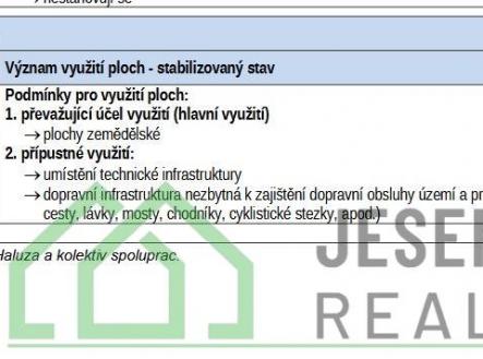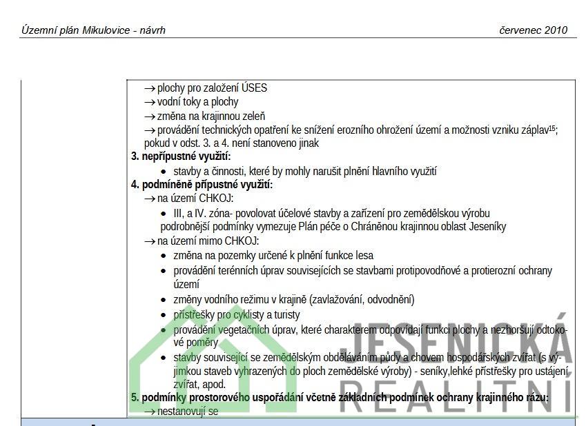 Jesenická realitní nabízí v zastoupení majitele prodej pozemku v obci Terezín v katastrálním území Mikulovice. Celková plocha pozemku je 6 787 m2 , v územním plánu je zařazená mezi plochy zemědělské. Momentálně je na pozemku vzrostlý les, který prošel nedávno prořezávkou. U pozemku naleznete autobusovou zastávku, kolem vede silnice mezi obcemi Mikulovice a Velké Kunětice. O pozemku lze uvažovat do budoucna jako o zahrádkářské kolonii, po změně územního plánu to mohou být i pozemky stavební. Pokud se Vám pozemek zalíbil, určitě ho můžete přijet navštívit osobně. Jednání ohledně ceny jsme nakloněni. Věříme, že se dohodneme k oboustranné spokojenosti.