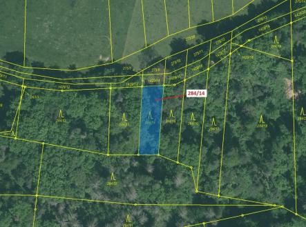 Lesní pozemek o výměře 441 m2, parcelní číslo 284/14, podíl 1/1, katastrální území Milavče, obec Milavče, obec s rozšířenou působností Domažlice, okres Domažlice, Plzeňský kraj.