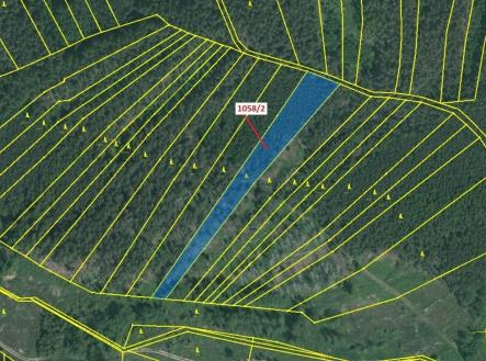 Lesní pozemek o výměře 5 152 m2, parcelní číslo 1058/2, podíl 1/1, katastrální území Radonice u Milavčí, obec Milavče, obec s rozšířenou působností Domažlice, okres Domažlice, Plzeňský kraj. Po těžbě.