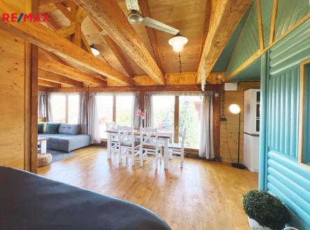 Výjimečná chata u Orlické přehrady o dispozici 3+kk, 80 m2 celkové plochy.