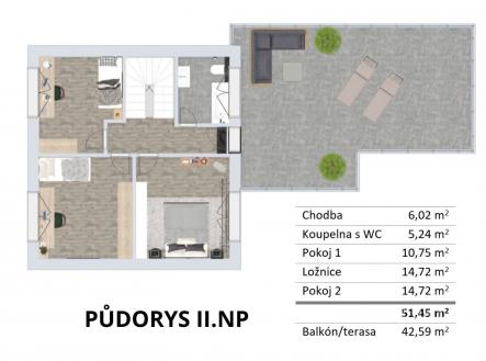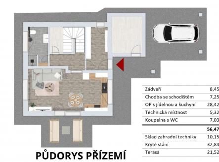 Prodej novostavby rodinného domu 4+kk, 108 m2, k tomu dvě prostorné terasy, kryté parkovací stání a