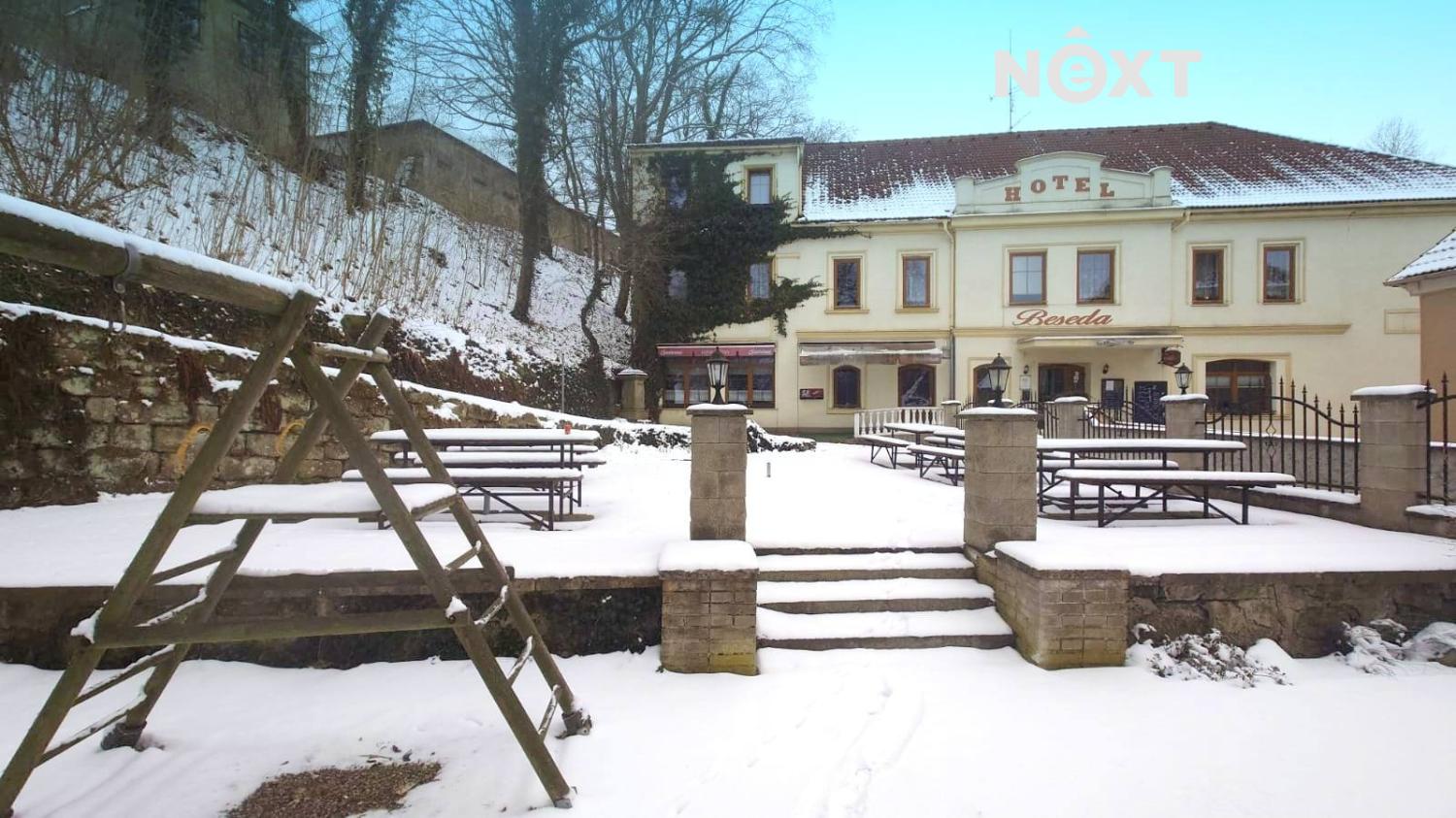 Zavedený, funkční hotel s restaurací a dlouholetou tradicí je na prodej. Skvělá investiční příležitost, ohromných podlahových 1 100m2, jakým způsobem ji uchopíte je zcela na vás.. Pokračovat v hoteliérství, byty, domov důchodců, školka, postižeňí, co tady vymyslíte vy? Součástí je plně vybavená restaurace, stylový výčep, nekuřácký salonek a velký sál 50-60 lidí. Přízemí povětšinou podlahové vytápění, rekonstruované všechna sociální zařízení. Lůžek 48, polovina hotelu po rekonstrukci, polovina udržovaný stav. Strategická poloha s dobrou dostupností. Pro komunikaci uvádějte evidenční číslo zakázky N116103.